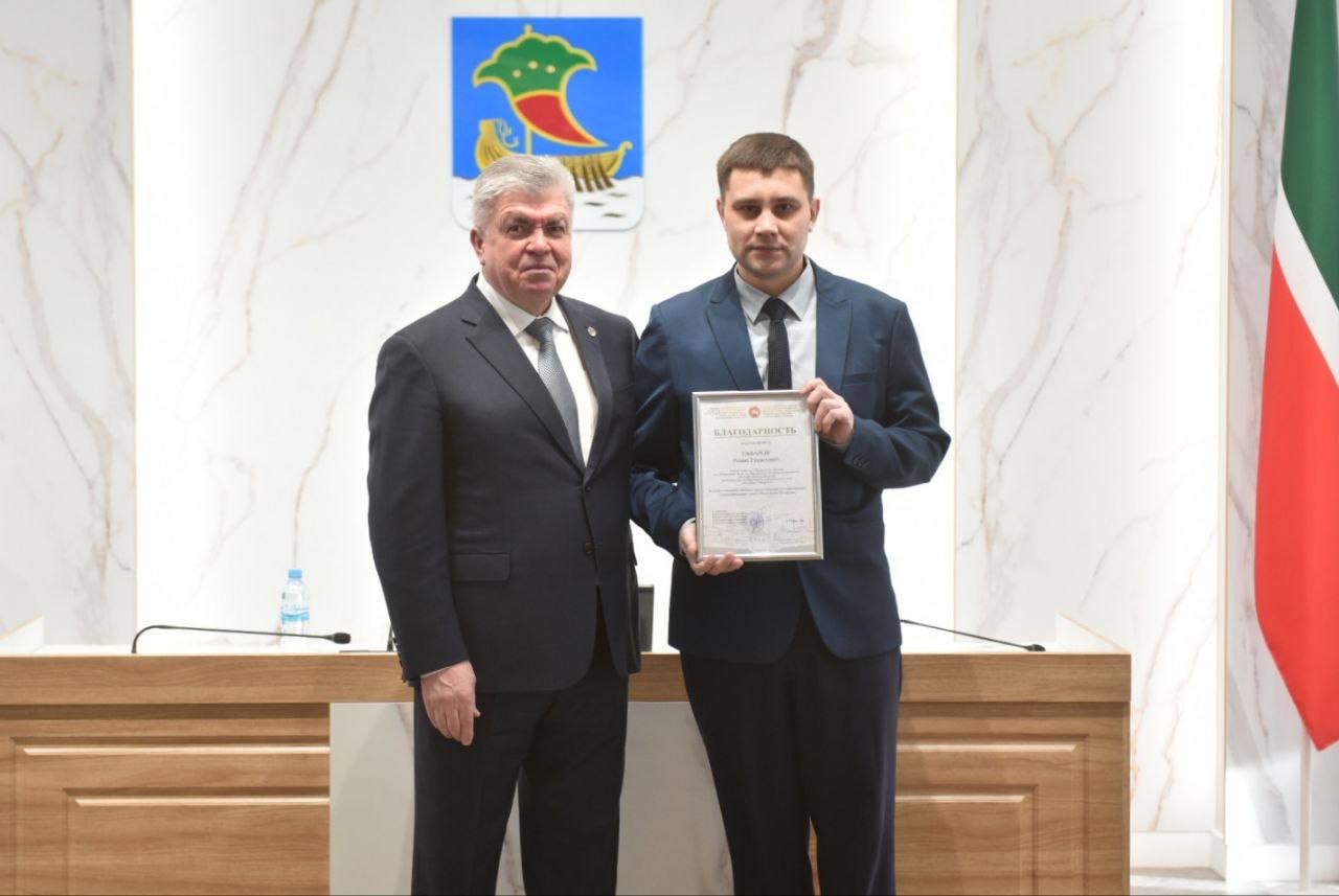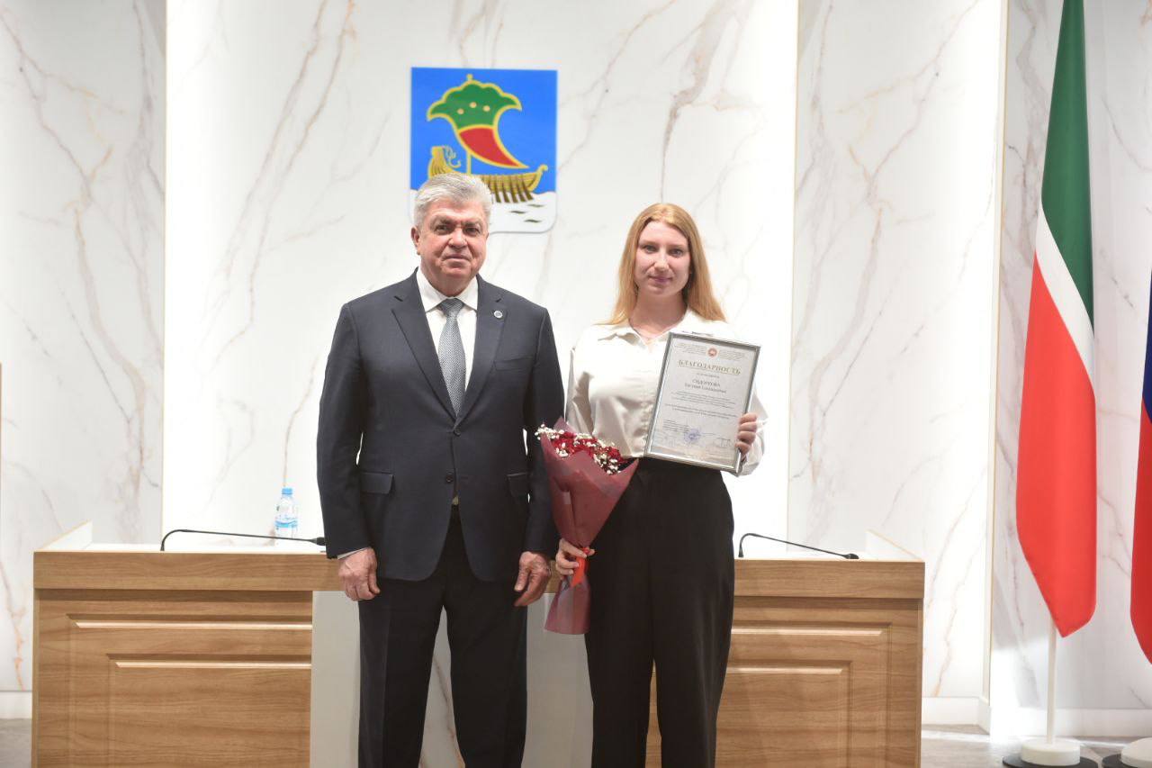 Также Наиль Магдеев вручил за вклад в развитие системы предоставления государственных и муниципальных услуг в Республике Татарстан Благодарности министра цифрового развития государственного управления, информационных технологий и связи Республики Татарстан сотрудникам Центрального филиала по городу Набережные Челны МФЦ. Поощрены главные специалисты Рамис Гафаров и Алена Федорова, а также заместитель начальника отдела Евгения Сидоркова.