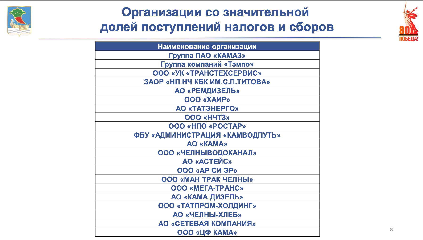 Хочу поблагодарить предприятия нашего города, которые на протяжении многих лет своевременно и в полном объеме исполняют свои налоговые обязательства, обеспечивая поступления во все уровни бюджета. На слайде приведены организации, обеспечивающие значительную долю поступлений налогов и сборов в городской бюджет», – произнесла спикер.