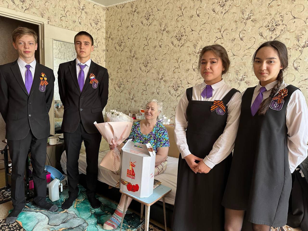 Учащиеся лицея имени А.С. Пушкина поздравили ветеранов накануне Дня Победы. Людмила Егоровна Мавренкова, Анастасия Михайловна Казанцева, Татьяна Семеновна Куклова, Анна Петровна Афонина и Васига Сираевна Набиуллина получили подарок и открытки от Раиса Республики Татарстан Рустама Минниханова и мэра города Наиля Магдеева.