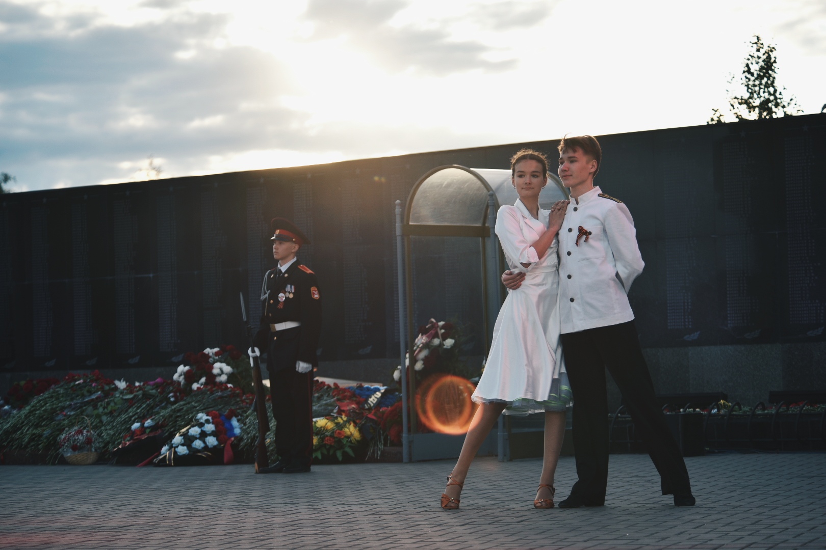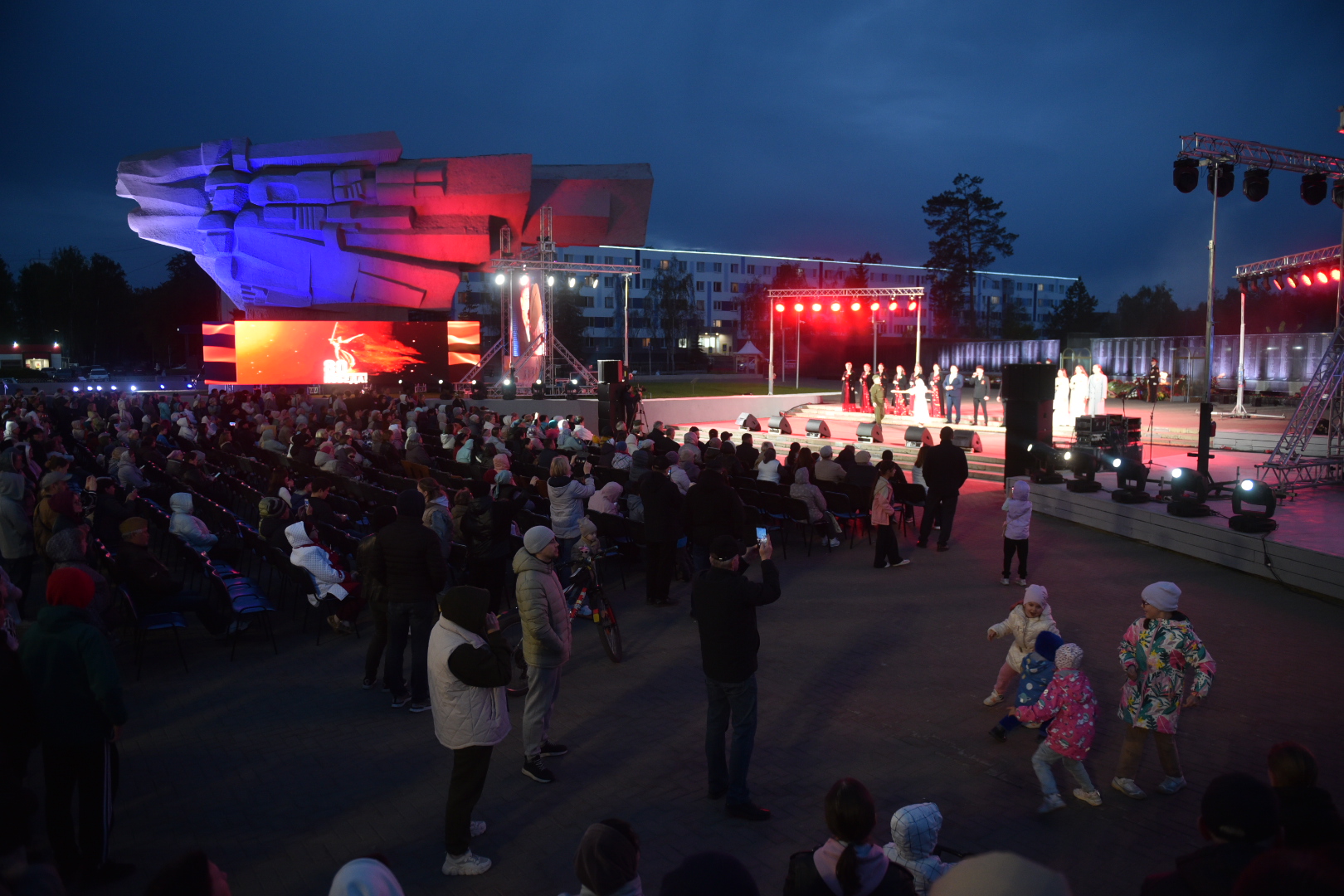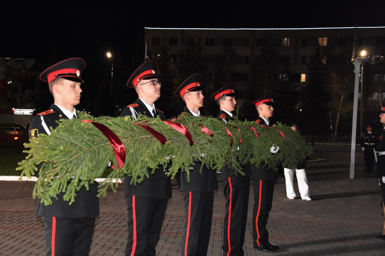 Концерт завершился церемонией возложения гирлянды памяти к Вечному огню, которую провели кадеты.
