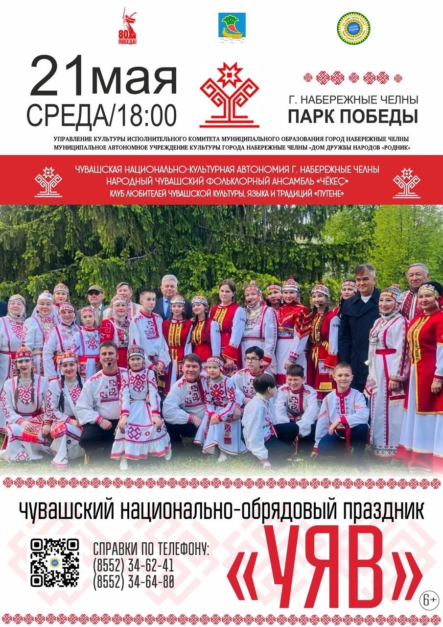 В парке Победы 21 мая в 18:00 состоится городской чувашский национально-обрядовый праздник Уяв. Мероприятие организует чувашская автономия и чувашский народный ансамбль «Чĕкеç» при поддержке управления культуры Исполнительного комитета города и Дома Дружбы народов «Родник».
