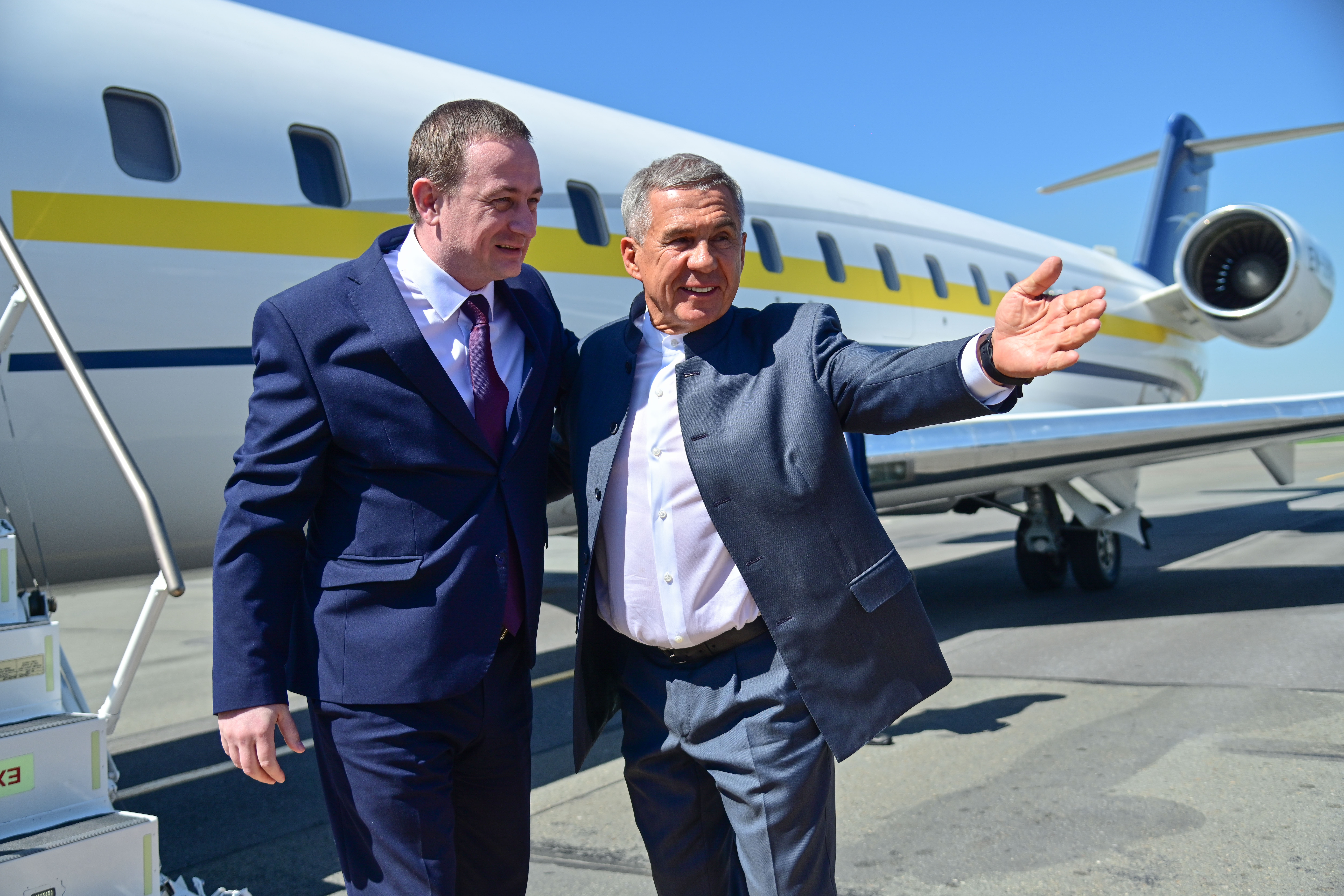 Сегодня премьер-министр Республики Беларусь Александр Турчин прибыл с рабочим визитом в Татарстан. В международном аэропорту «Бегишево» его встретил Раис Татарстана Рустам Минниханов. Гостю республики предстояло посетить три крупных предприятия: «ТПК МТЗ-Татарстан» у Елабуги, «ТАНЕКО» у Нижнекамска и КАМАЗ в Набережных Челнах.