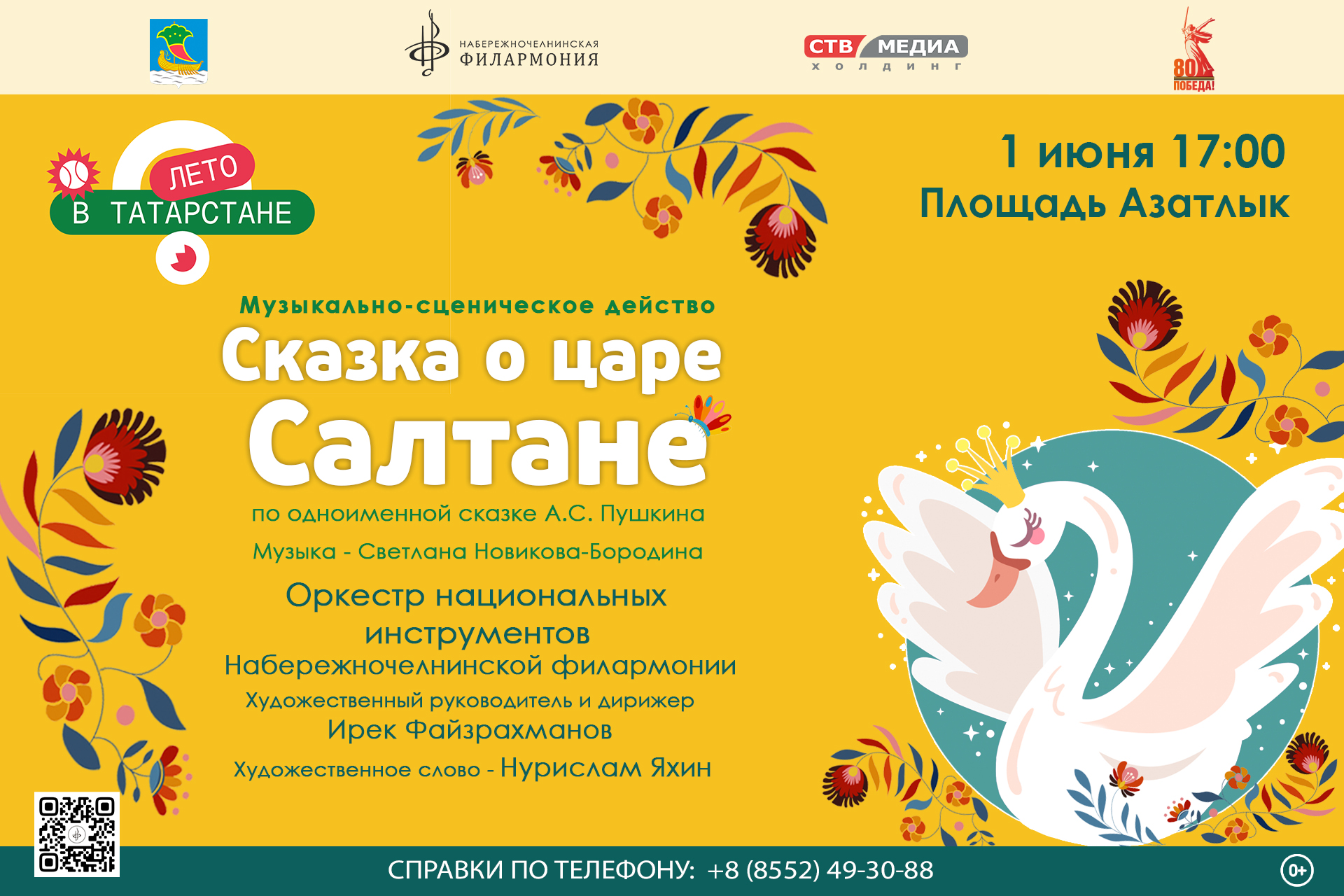 В 17:00 на площади Азатлык оркестр национальных инструментов отправит зрителей в музыкальное путешествие в мир Пушкина, исполнив «Сказку о царе Салтане».