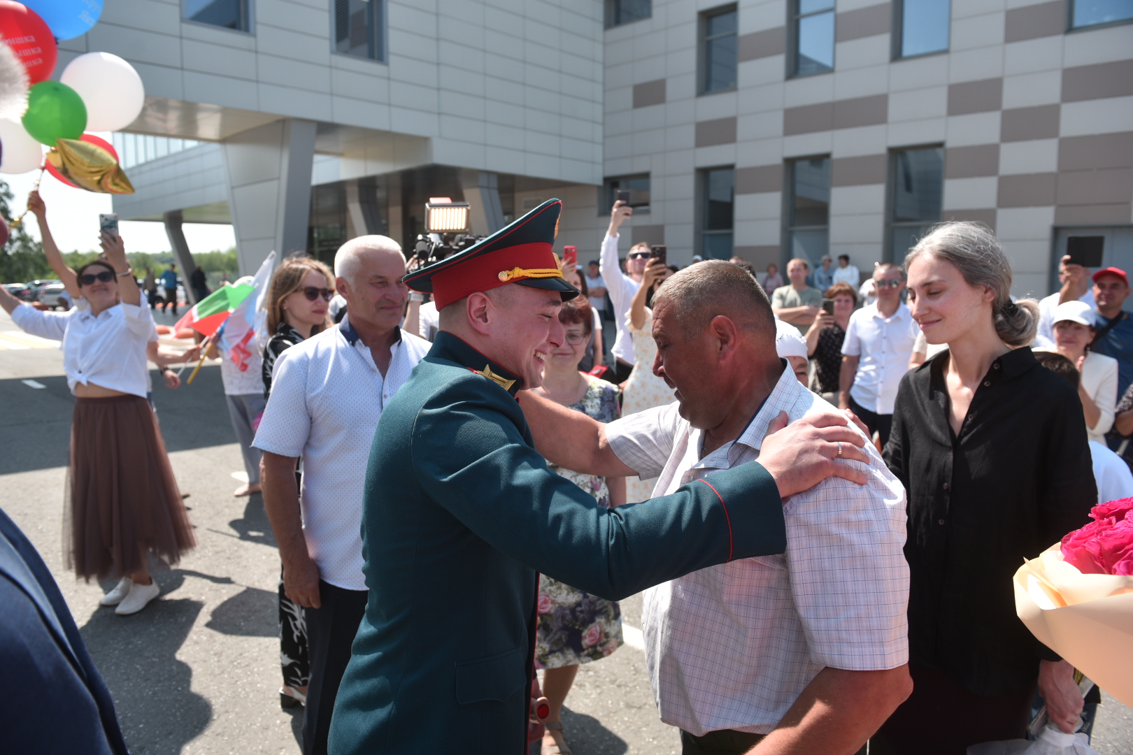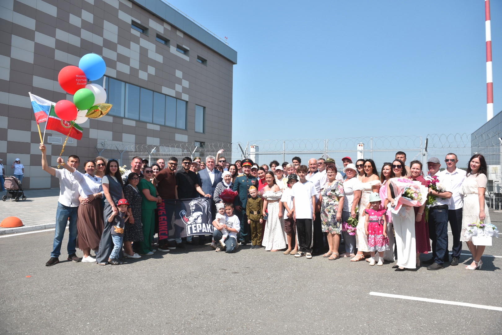 Сегодня в аэропорту «Бегишево» состоялась торжественная встреча бойца СВО из Альметьевска. Мэр Набережных Челнов Наиль Магдеев вместе с многочисленными родственниками и друзьями военнослужащего встречал младшего лейтенанта Айдара Сайфутдинова и его супругу Марию.