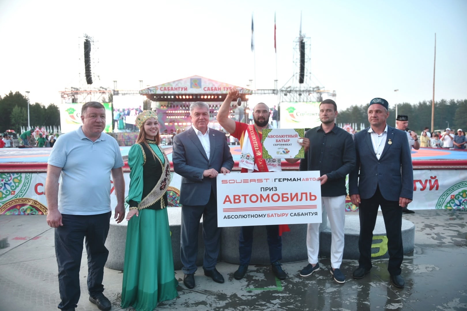 Мэр Наиль Магдеев вручил победителю ключи от автомобиля, а также барана.