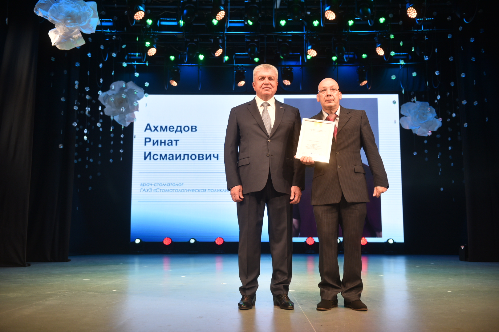 За многолетний добросовестный труд Почетной грамотой Министерства здравоохранения Российской Федерации награждены: врач-стоматолог стоматологической поликлиники №2 Ринат Ахмедов, замглавврача по лечебной части детской стоматологической поликлиники №1 Ралина Галиева, врач-хирург городской поликлиники №3 Андрей Коробицын, врач-терапевт-участковый городской больницы №5 Эльза Телешева.