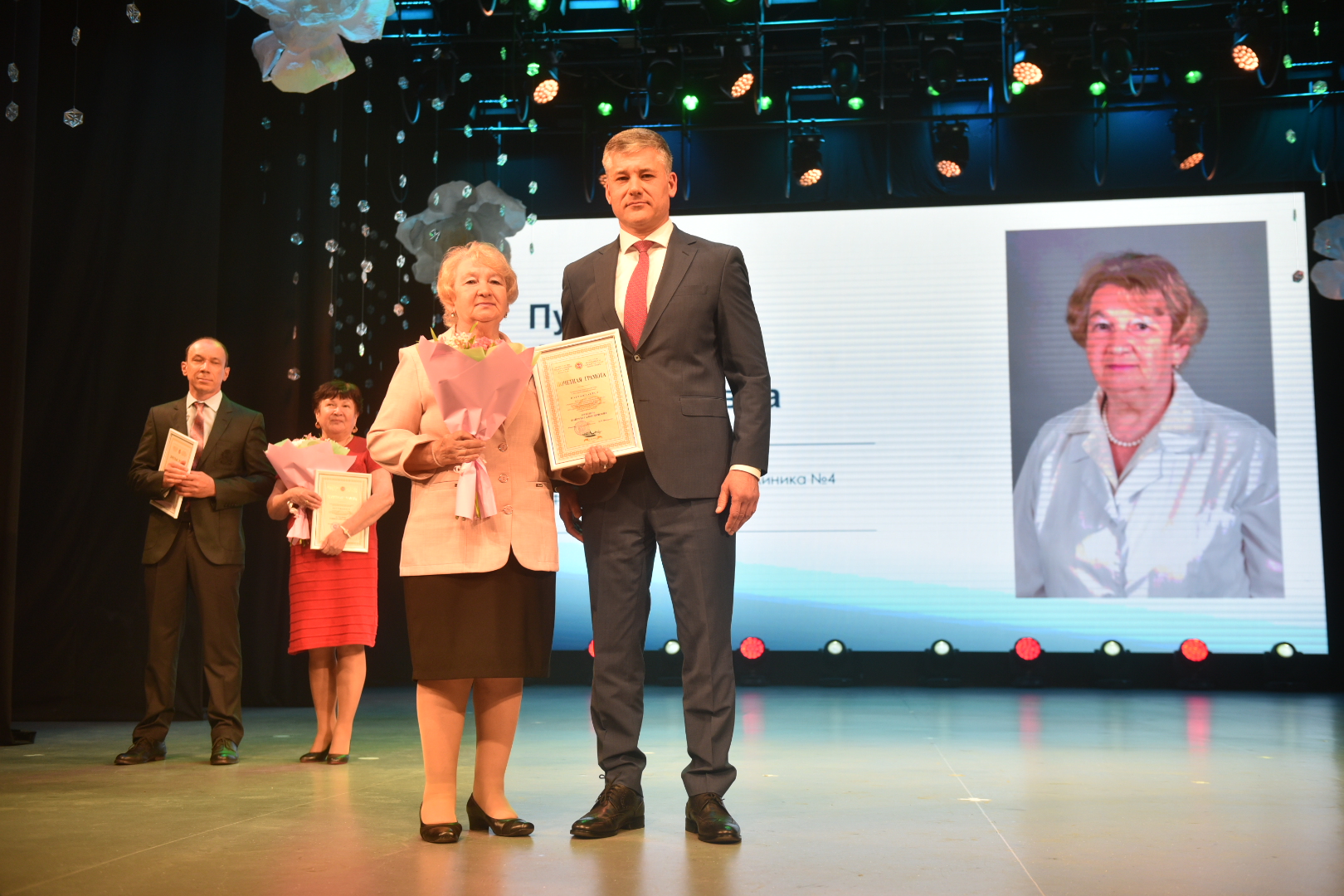 За многолетний добросовестный труд, успехи в работе, вклад в развитие системы здравоохранения Почетной грамотой Министерства здравоохранения Республики Татарстан награждены: врач-анестезиолог-реаниматолог городской больницы №2 Айрат Ахметшин, медицинская сестра детской городской поликлиники №2 Гульшат Нуруллина, врач-педиатр детской городской поликлиники №4 им. Ф.Г. Ахмеровой Файруза Пушина.