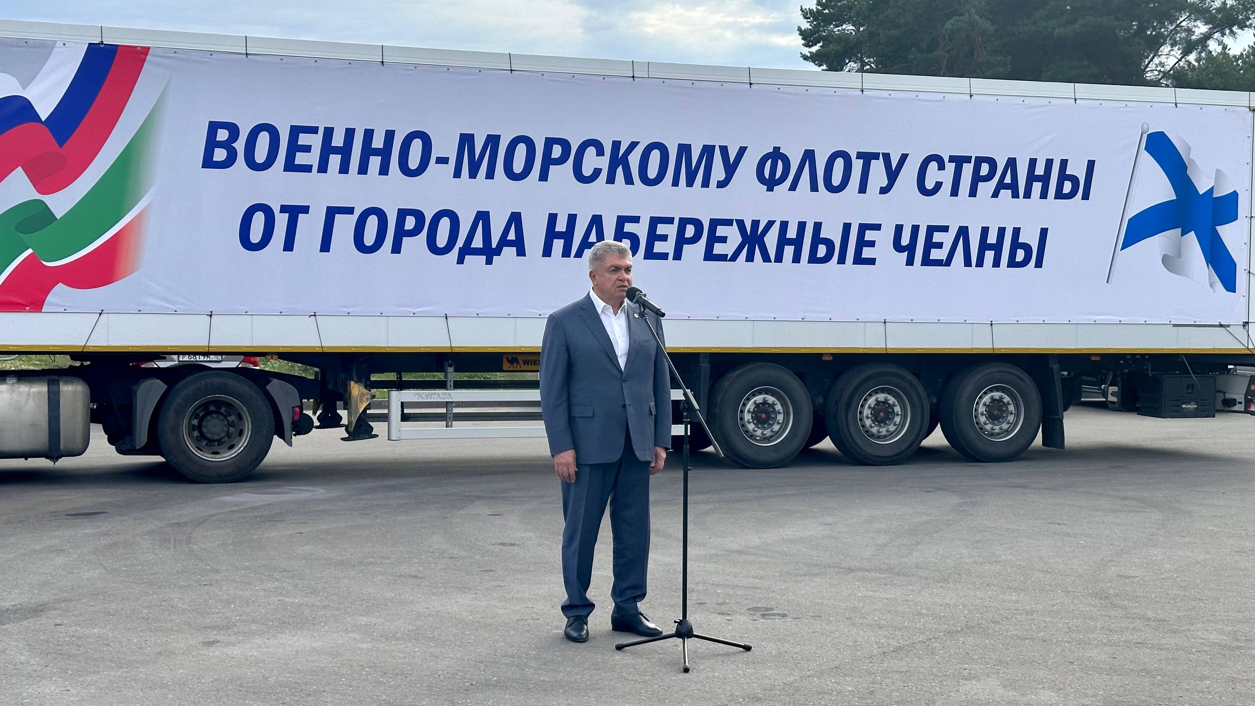 «В преддверии праздника, последнего воскресенья июля, наша страна отмечает День военно-морского флота Российской Федерации. И мы, как шефы, как люди, которые чтят традиции нашего Военно-морского флота, как люди, которые оказывают постоянную помощь нашему кораблю «Набережные Челны» посчитали своим священным долгом направить очередную шефскую помощь нашим воинским частям. В первую очередь, экипажу корабля «Набережные Челны».