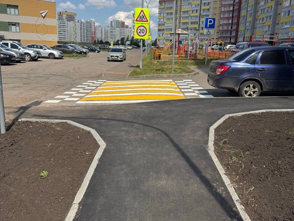 заведения обустроен новый удобный тротуар, установлены необходимые дорожные