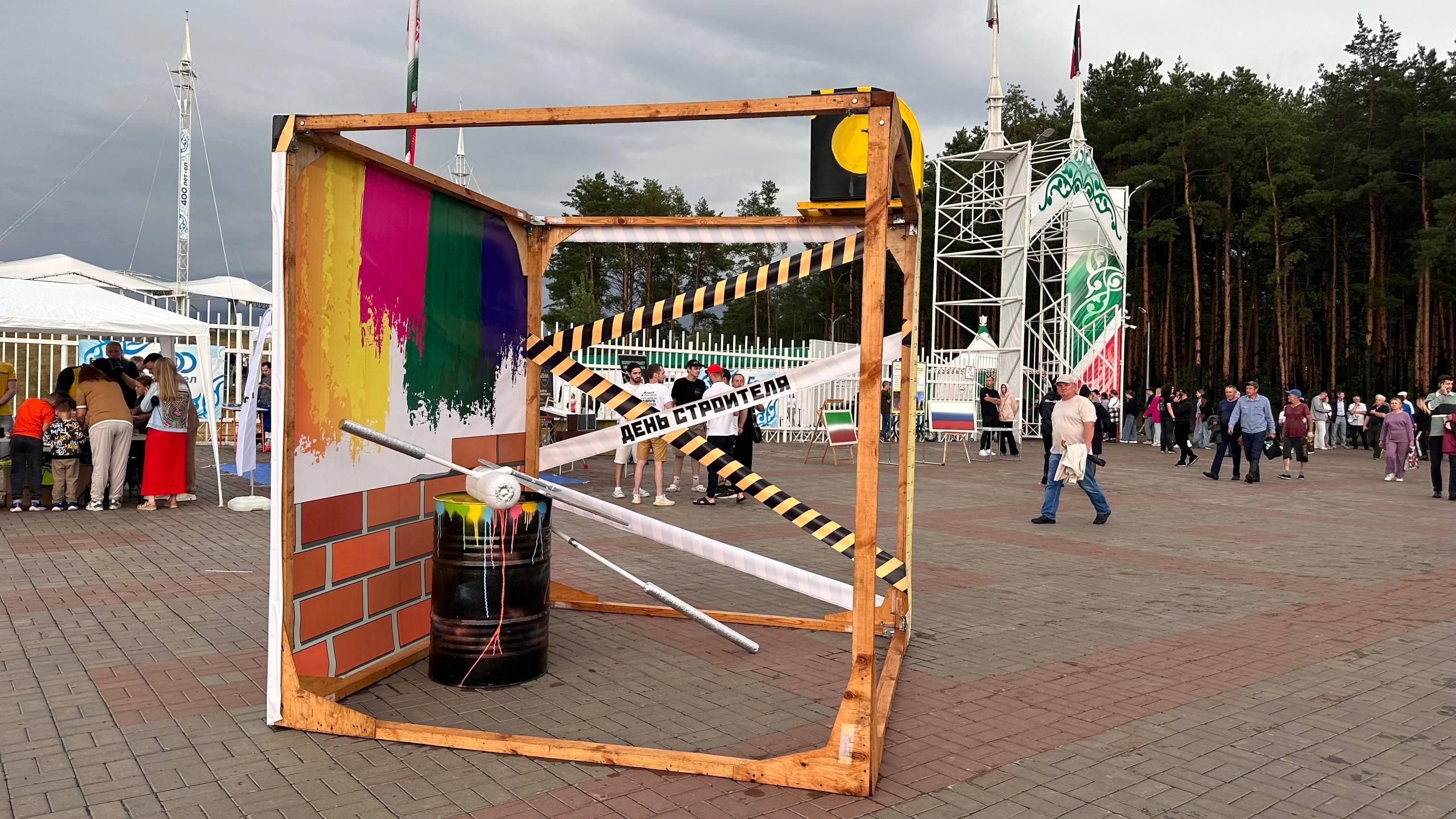 Перед началом официальной части празднования Дня строителя мэр Наиль Магдеев, министр строительства, архитектуры и жилищно-коммунального хозяйства Республики Татарстан Марат Айзатуллин посетили выставку строительной техники и фотозоны.