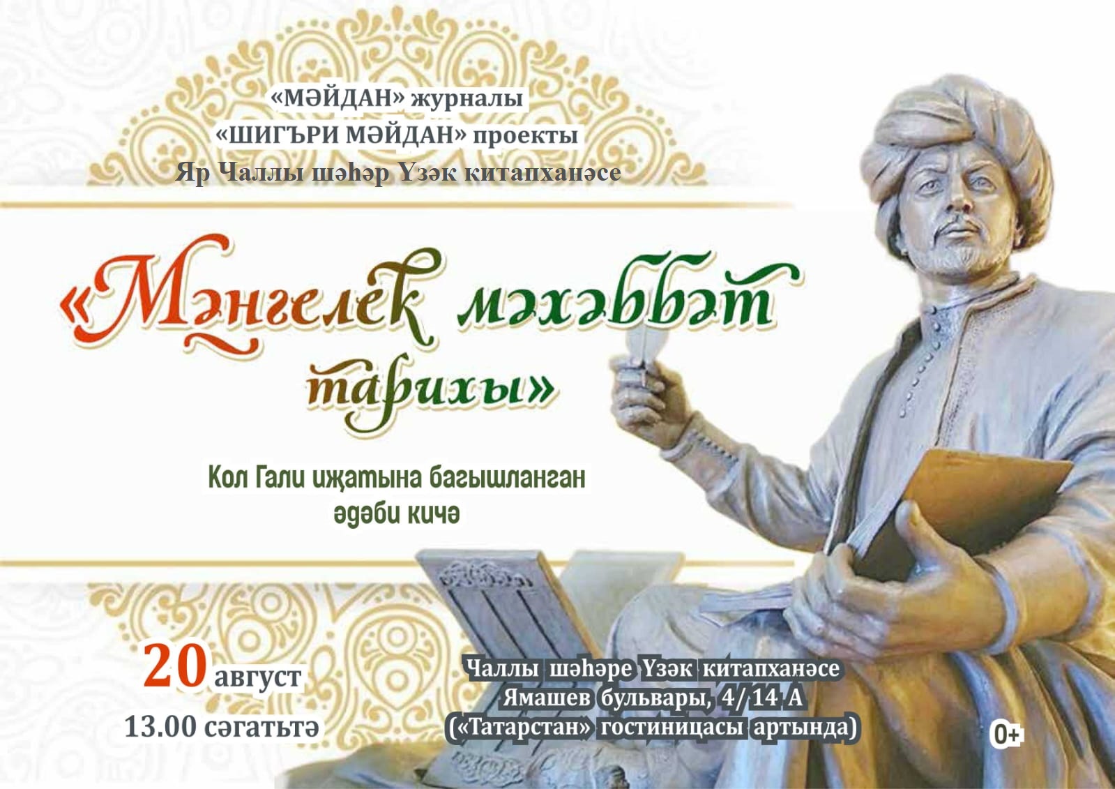Литературный вечер «Любовное повествование», посвященный творчеству средневекового поэта Кул Гали состоится в Центральной городской библиотеке.