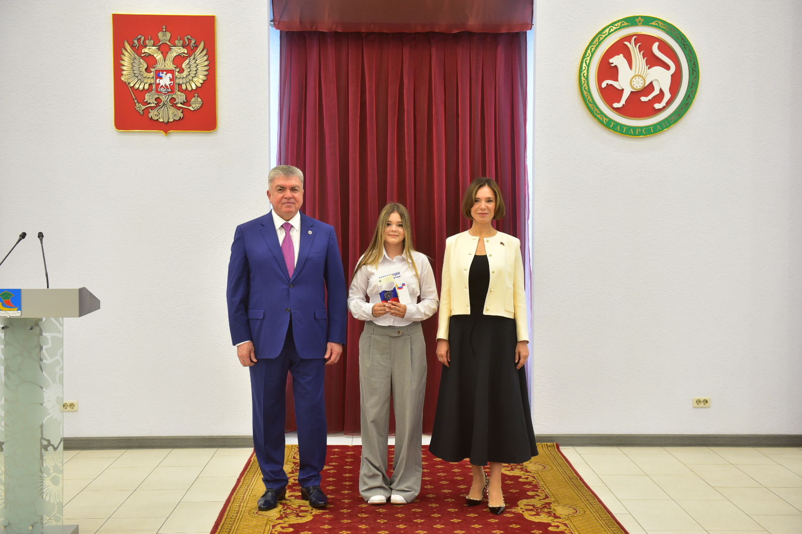 Мэр обратился и к родителям, бабушкам и дедушкам, которые пришли разделить с ребятами праздничный день: «Наши с вами дети становятся полноправными гражданами нашего Отечества – Российской Федерации. Здесь мы с вами появились на свет, научились ходить, говорить, любить, мечтать, уважать друг друга. Здесь находится прах наших предков. Наше Отечество имеет богатую историю. Для вас и для нас это общий семейный праздник, мимо него мы не могли пройти: мы вместе с вами радуемся тому, что наши дети в самом главном зале города Набережные Челны получают в торжественной обстановке самый главный документ любого гражданина».
