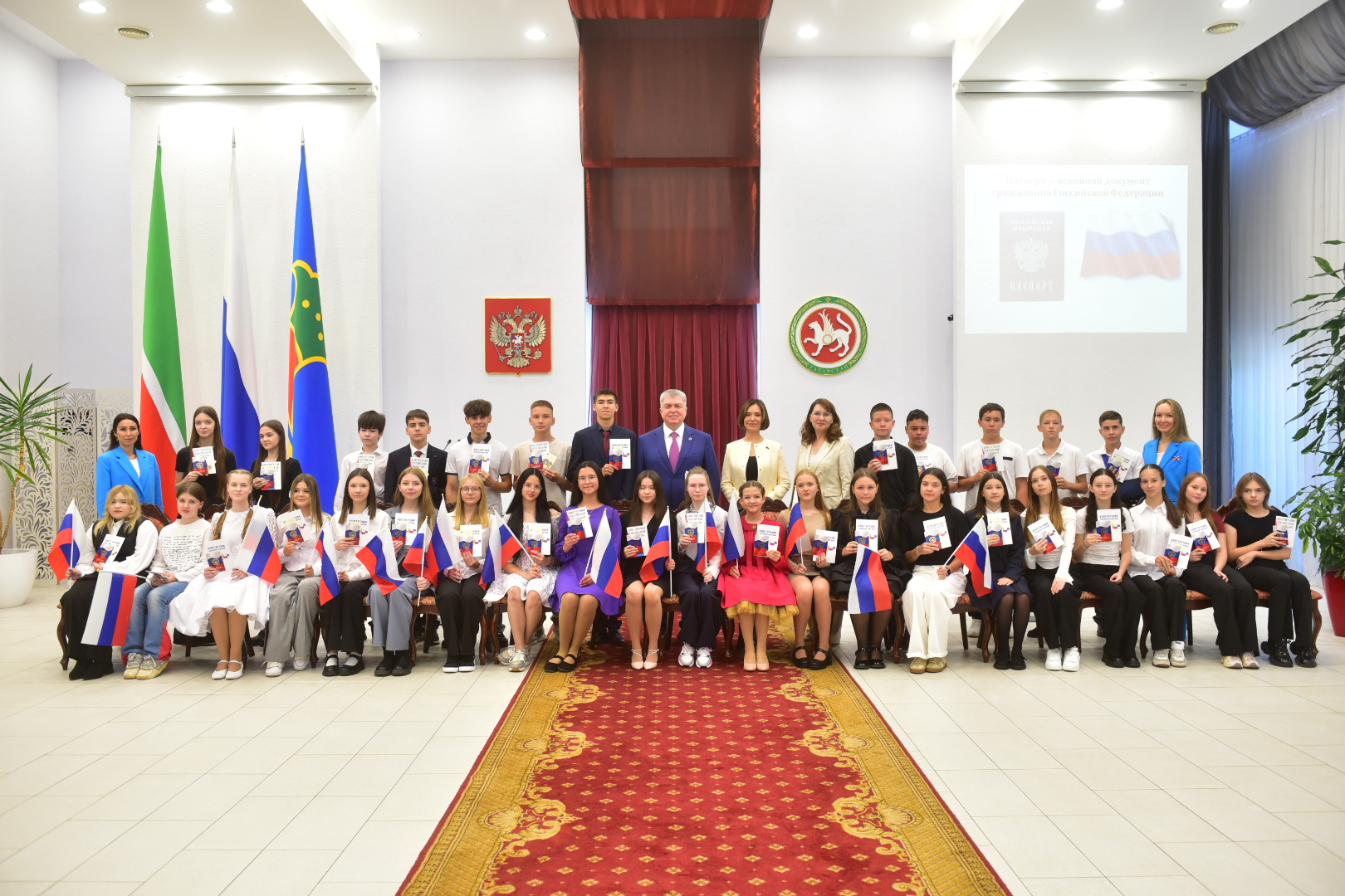 В преддверии Дня государственного флага Российской Федерации во Дворце торжеств Набережных Челнов состоялось вручение паспортов 33 челнинцам, достигшим 14-летнего возраста.