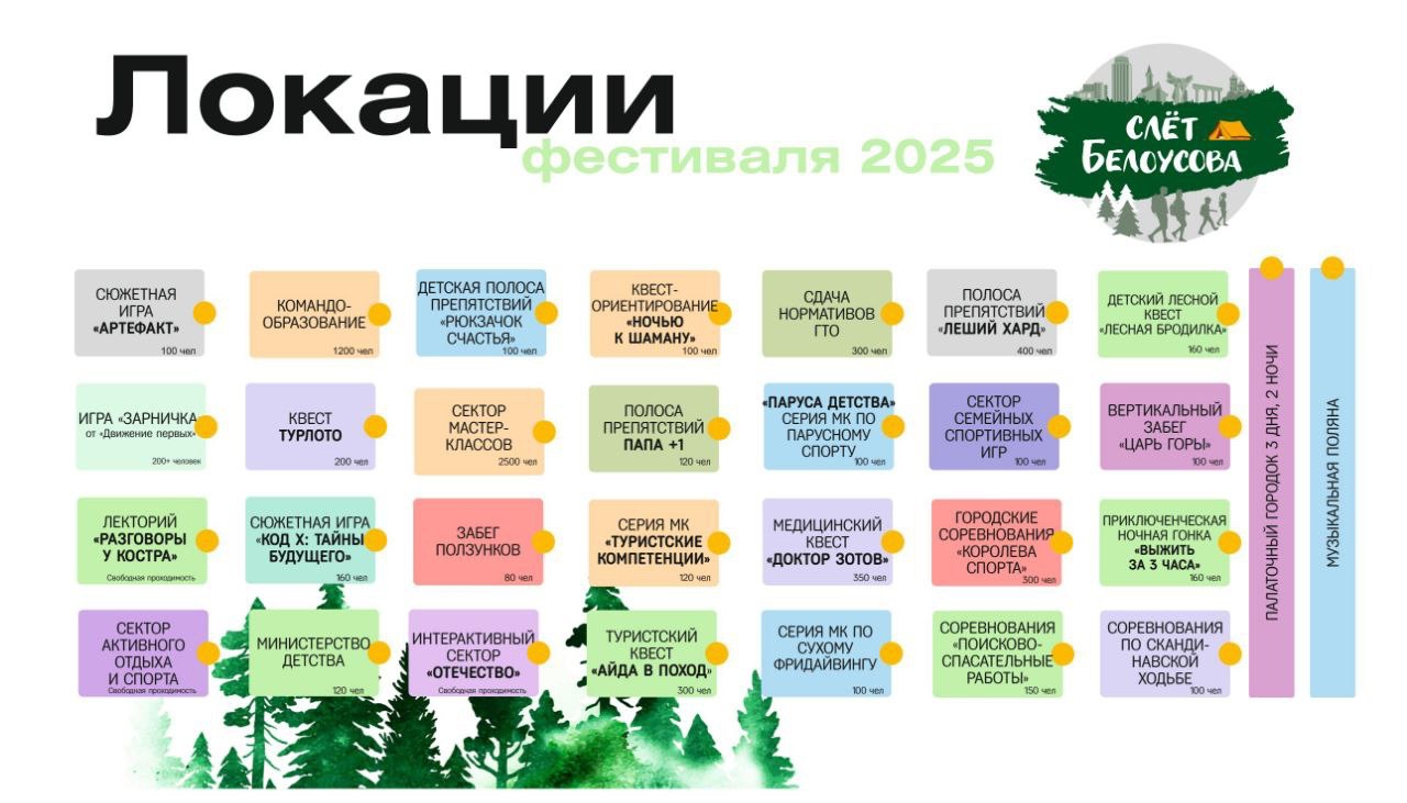 Быел фестиваль кысаларында 30 локациядә мастер-класслар, квестлар, уеннар, ярышлар уздырыла. Алар барысы да катнашучылар өчен бушлай узачак.