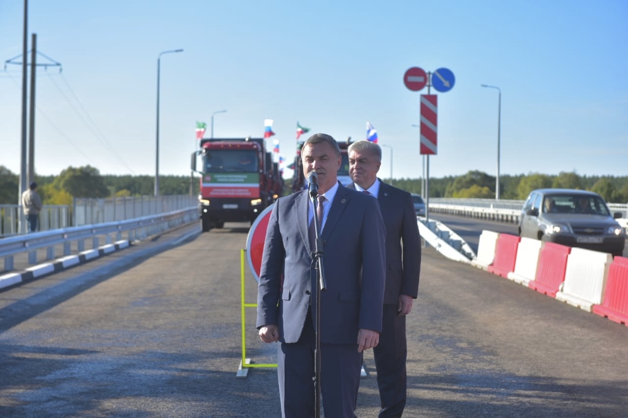Сегодня состоялась торжественная церемония открытия рабочего движения по мосту через реку Шильна (Боровецкий мост) после капитального ремонта моста и проспекта Яшьлек с участием мэра города Наиля Магдеева и министра транспорта и дорожного хозяйства Республики Татарстан Фарита Ханифова.