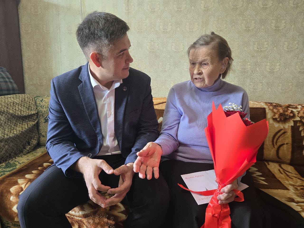 Ветерана поздравили глава Центрального района Фидарис Хабибуллин и председатель ТОС "17 комплекс" Владимир Ртищев.