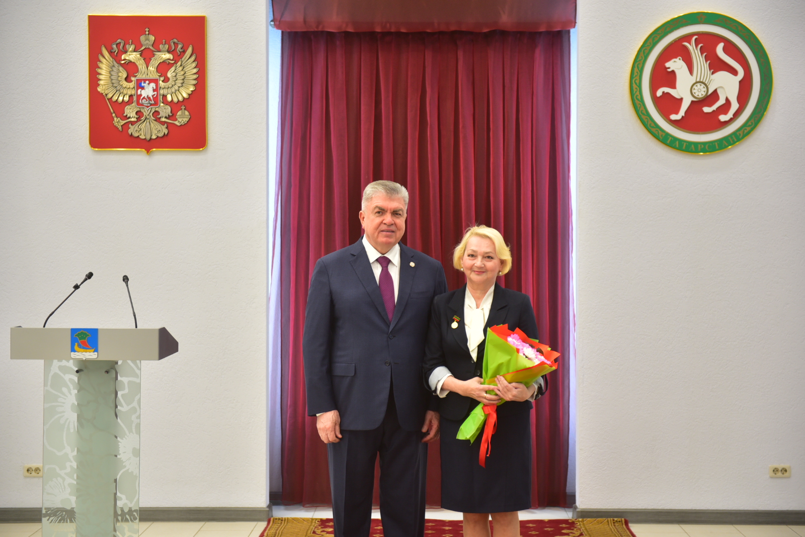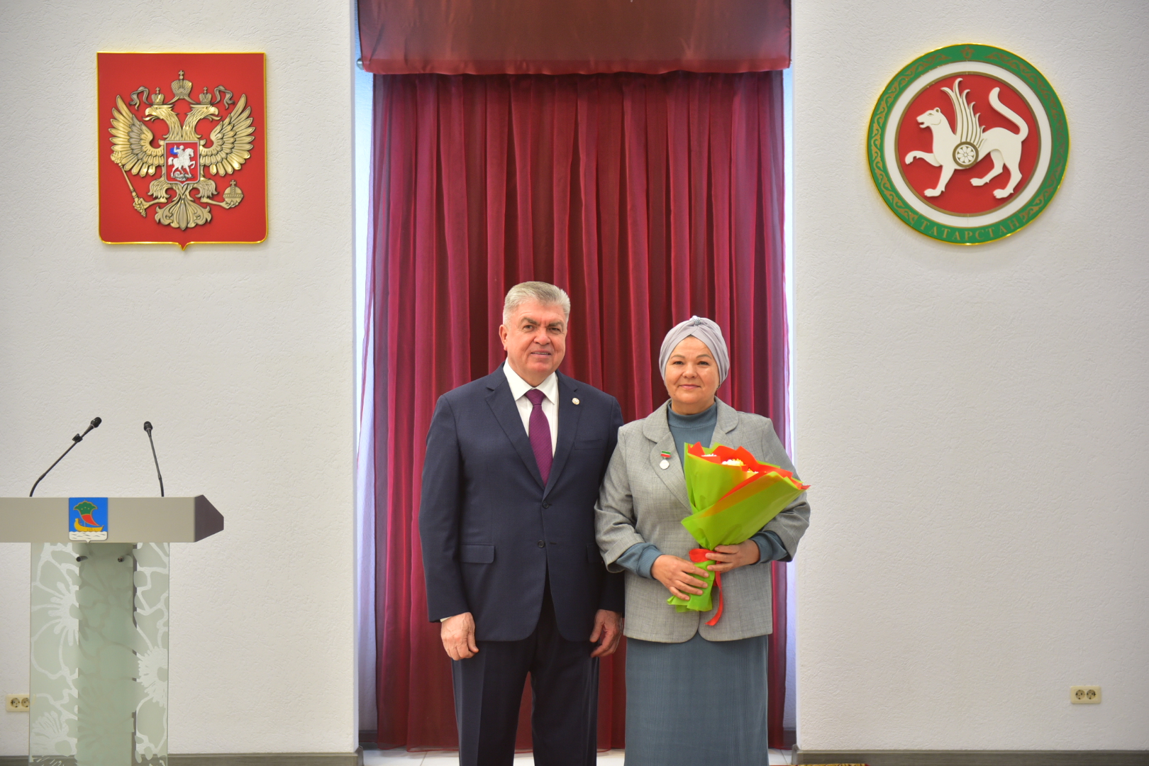 Мэр вручил заслуженные награды отличившимся педагогам. За многолетний добросовестный труд и заслуги в сфере образования почетное звание «Почетный работник сферы образования Российской Федерации» присвоено заместителю директора по учебной работе школы №15 Сирине Абдуллиной; заведующему детским садом № 48 «Винни-Пух» Гульнаре Хузиной; директору Кадетской школы №82 имени Героя Советского Союза Ильдара Маннанова Эльмире Шариповой.