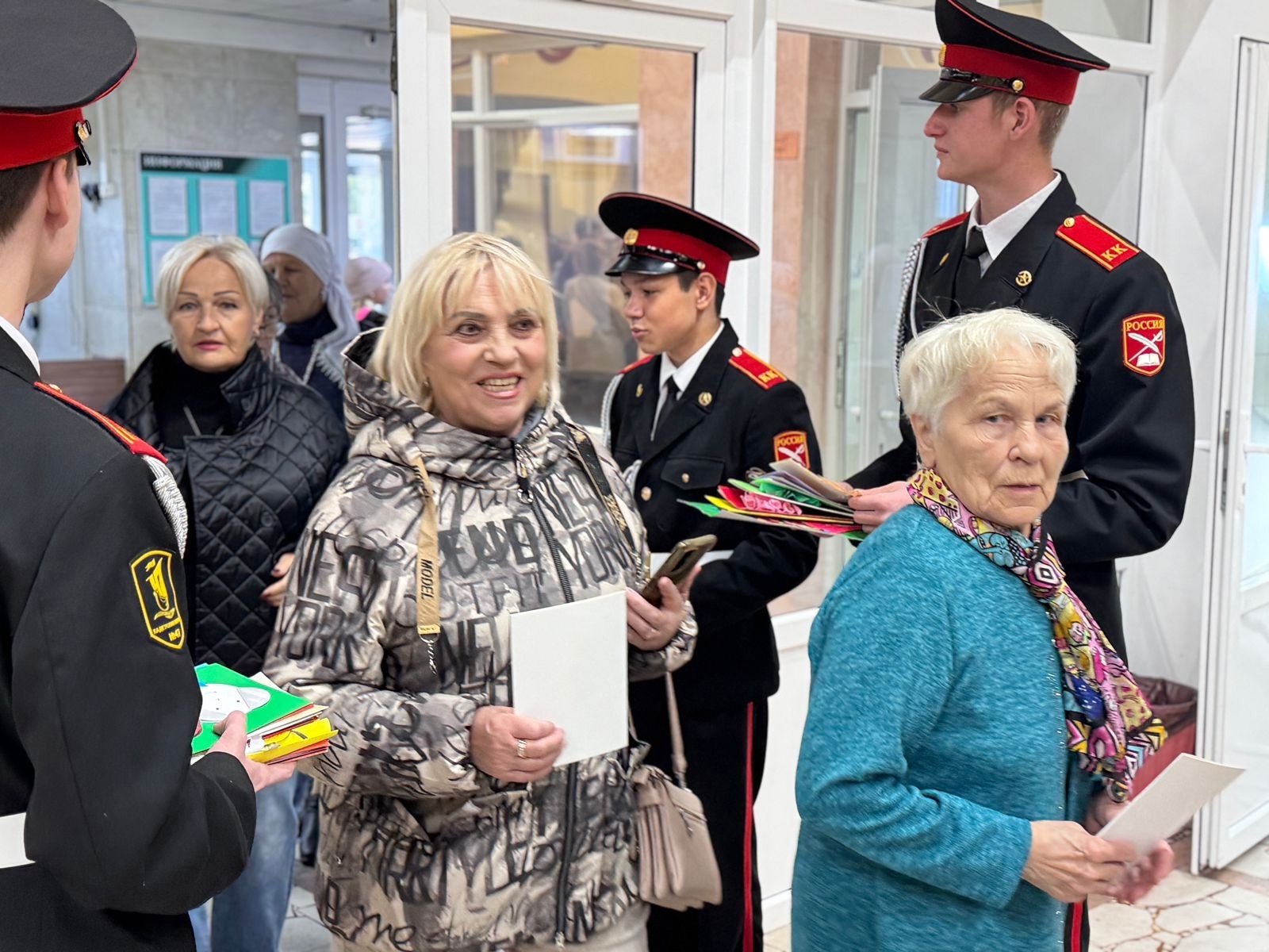 В холле концертного зала гостей праздника встречали: ансамбль «Кампанелла» и ученики кадетского класса имени Героя Советского Союза Никиты Кайманова, которые вручали поздравительные открытки приглашенным. Открытки, в знак глубокого уважения и внимания к челнинцам серебряного возраста, подготовили воспитанники детских садов и учащиеся школ Центрального района.