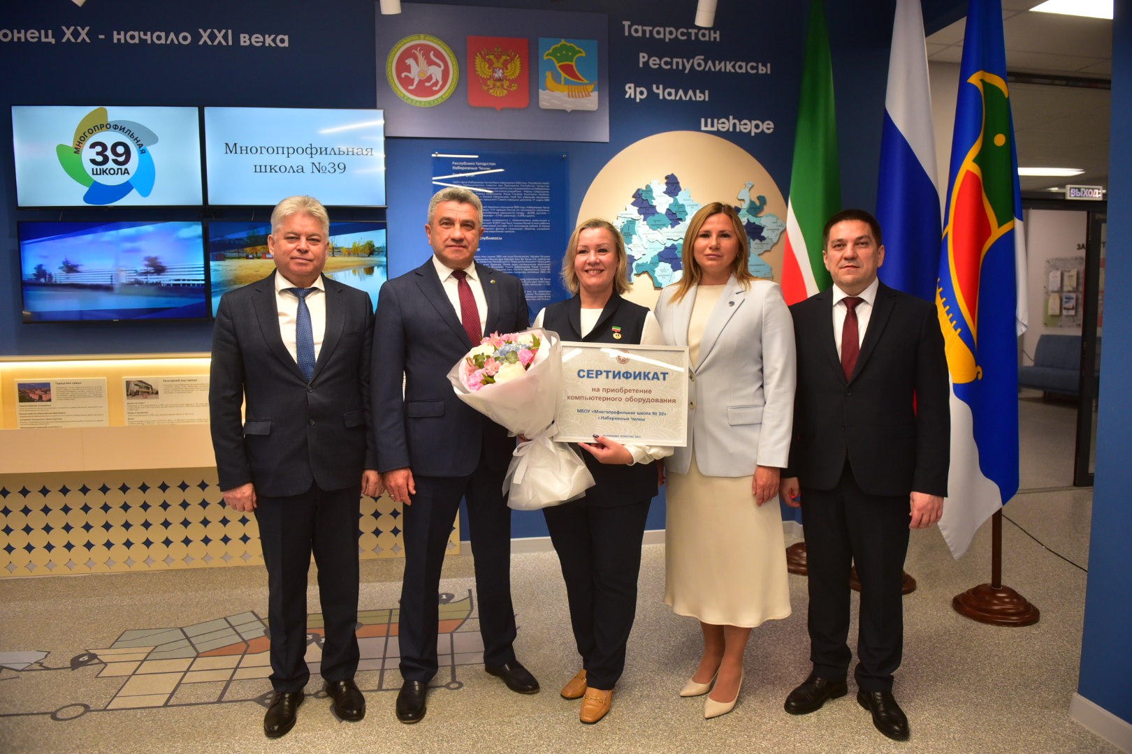 После речи Раиса директорам новых школы вручили сертификаты на приобретение компьютерного оборудования – директор многопрофильной школы №39 Наталья Тутова получила сертификат из рук министра образования и науки Республики Татарстан Ильсура Хадиуллина. Она поблагодарила Раиса Татарстана, правительство республики и Российской Федерации за внимание к подрастающему поколению.