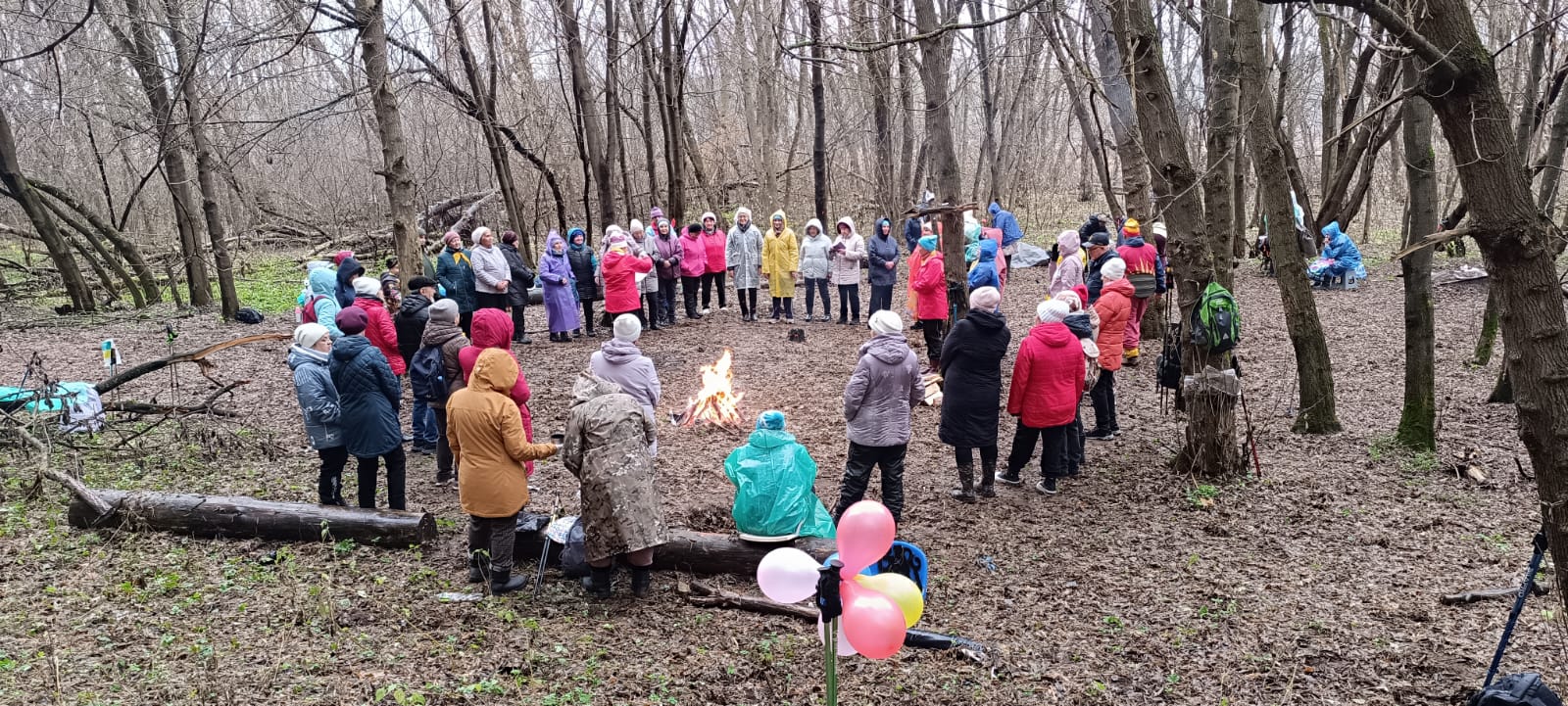 Мероприятие открыла оздоровительная часть: участники прошли по лесным тропам с палками, выполнили традиционную разминку и дыхательную гимнастику. А затем началась сама «демонстрация» — яркая колонна с флагами, шарами и песнями двинулась по берегу реки Шильна на поляну для встречи.