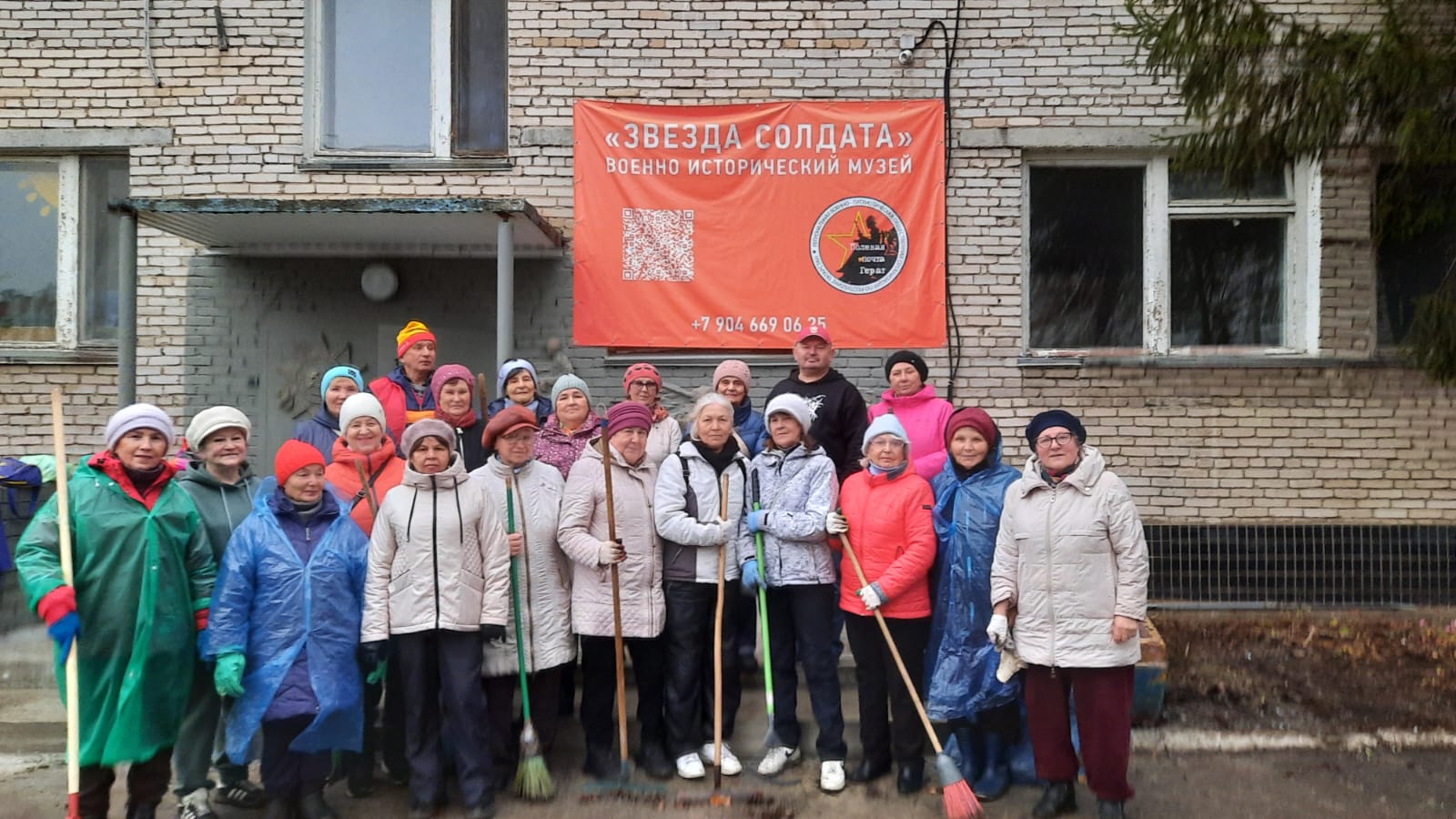 Серебряные волонтеры, в числе которых активисты школы активного долголетия Набережночелнинского комплексного центра социального обслуживания населения «Доверие», дружной командой в количестве тридцати мужчин и женщин старшего возраста провели субботник на территории военно-исторического музея «Звезда солдата».