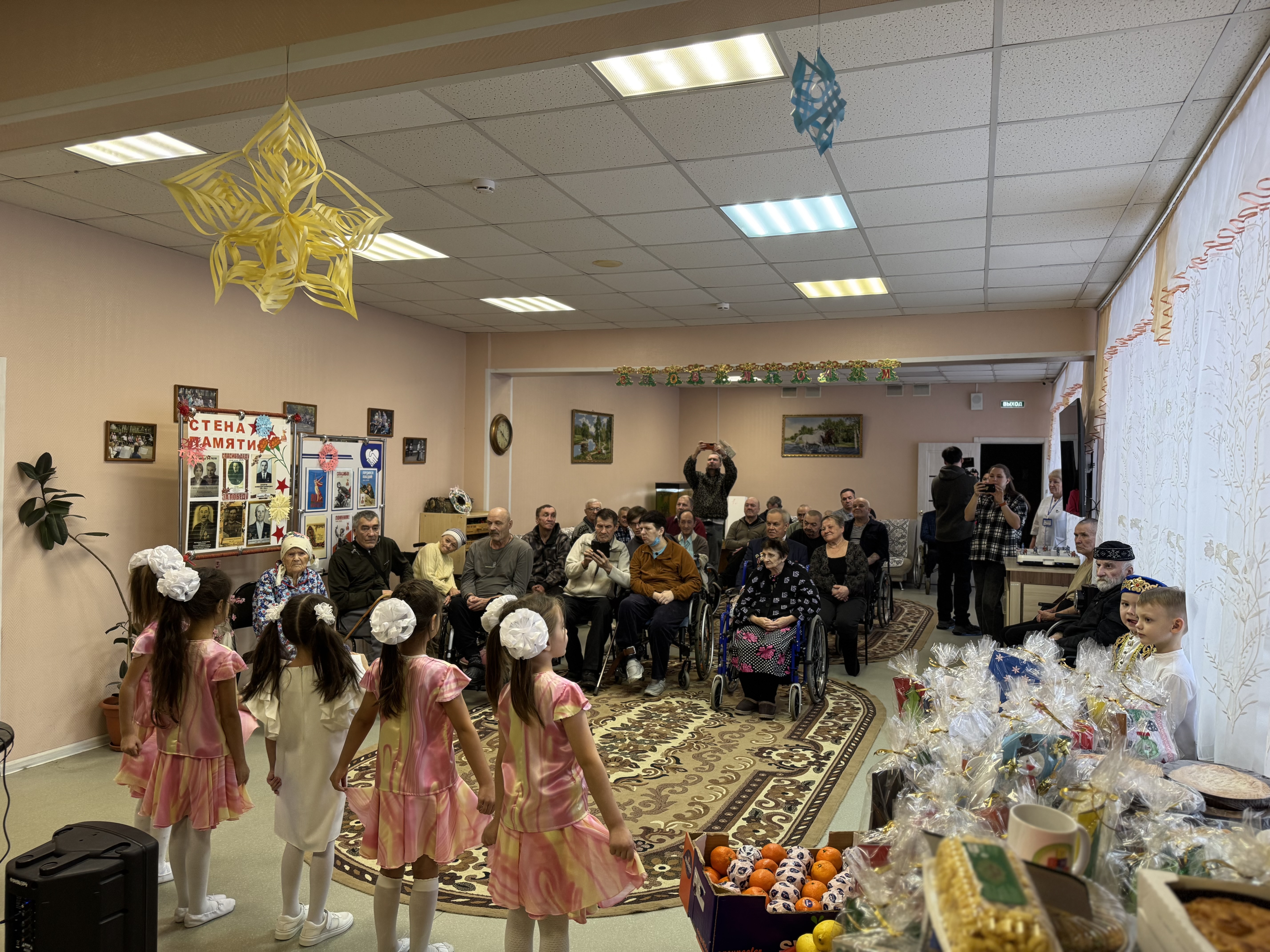 Кульминацией праздника стал выход Деда Мороза и Снегурочки, вместе с которыми жители интерната спели задорные новогодние песни под аккордеон, создавая настоящую зимнюю сказочную атмосферу.