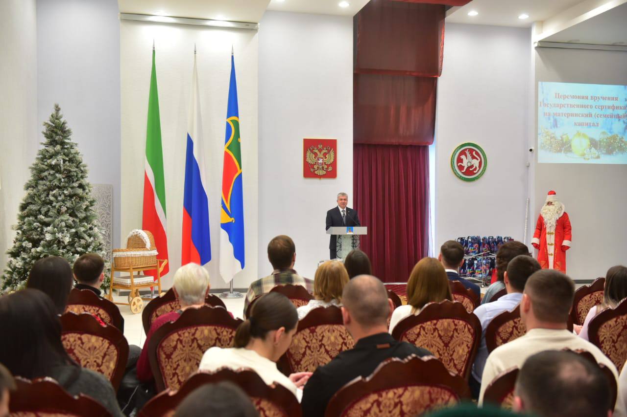 Сегодня во Дворце торжеств Набережных Челнов состоялось вручение сертификатов на материнский (семейный) капитал 25 челнинским семьям. В торжественной обстановке сертификаты вручил мэр города Наиль Магдеев.