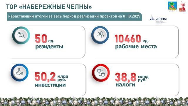 Развиваются промышленные и индустриальные парки, где работают 362 резидента (создано более 20 тыс. рабочих мест). Доля объема отгруженной продукции резидентами парков в общем объеме составляет 30%. Челнинские парки заполнены, предприниматели реализуют новые проекты. Ведется работа по созданию третьей очереди муниципального промышленного парка «Развитие». Планируемый объем инвестиций составит более 2 млрд руб. Будет создано 600 новых рабочих мест.