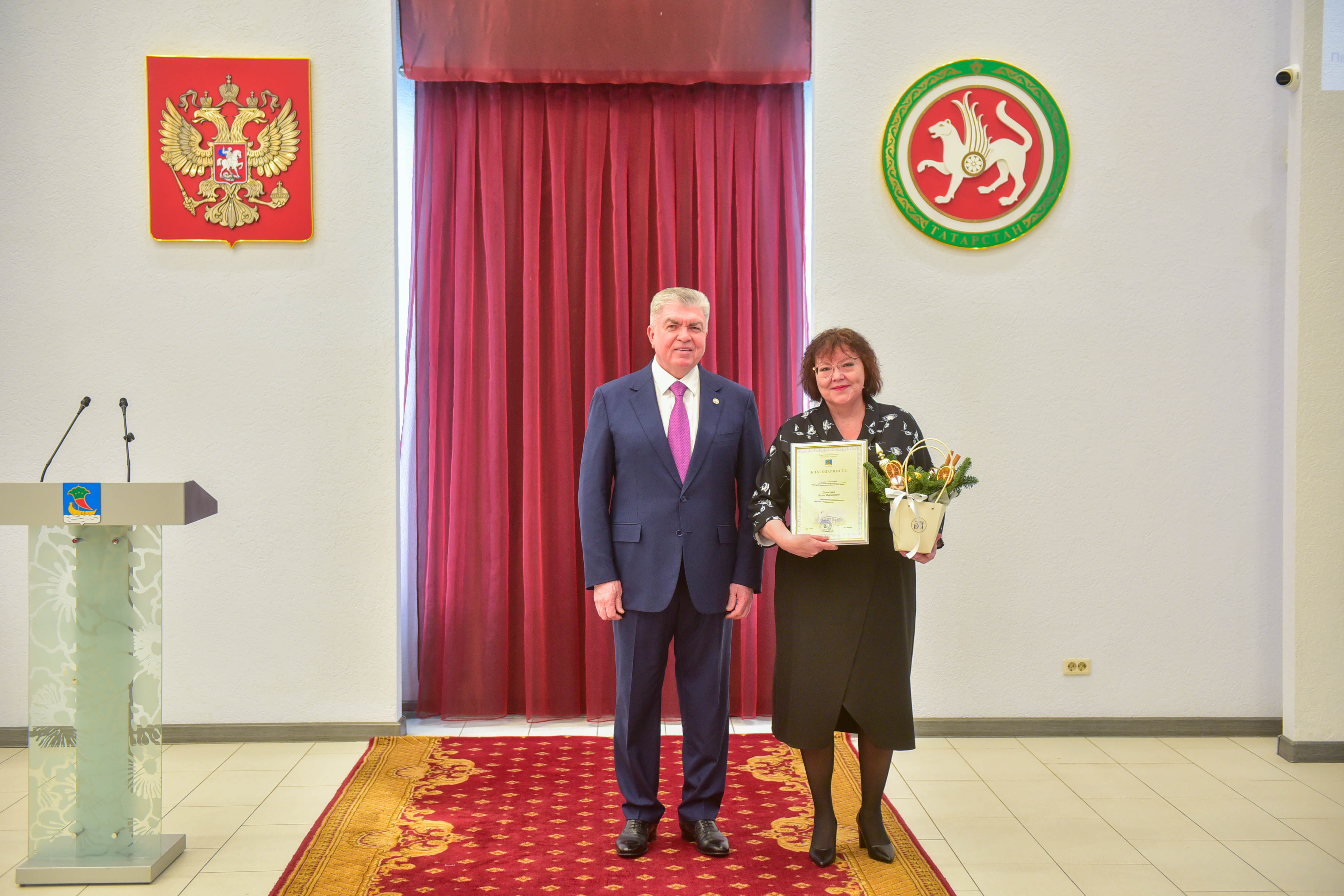 Награждаемым вручили продукцию, сделанную в Набережных Челнах: натуральную косметику Anvelian, сертификаты в магазин одежды «Клуб миллионеров» и цветы от магазина «Теплица Ди».