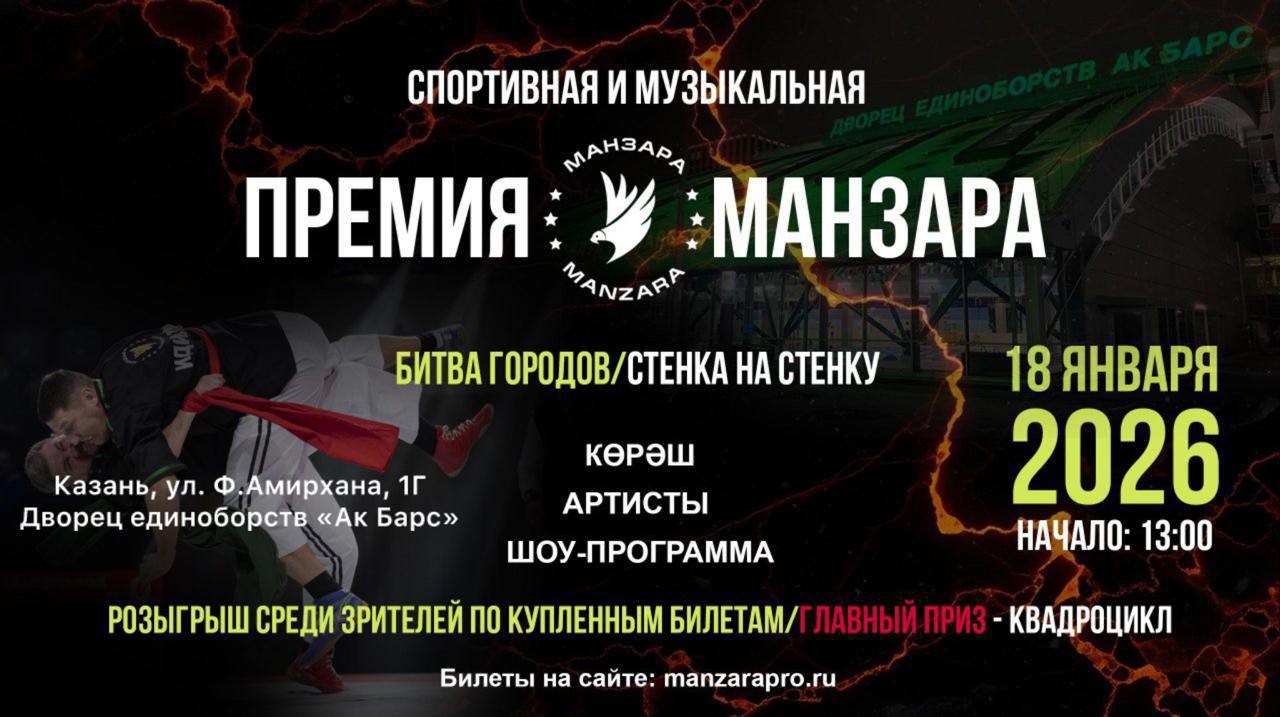 Во Дворце единоборств «Ак барс» (Казань, ул. Ф.Амирхана, 1Г) соберутся лучшие спортсмены, чьи достижения в этом году заслуживают особого признания. Ежегодная премия «Манзара» отмечает выдающиеся результаты в различных видах спорта.