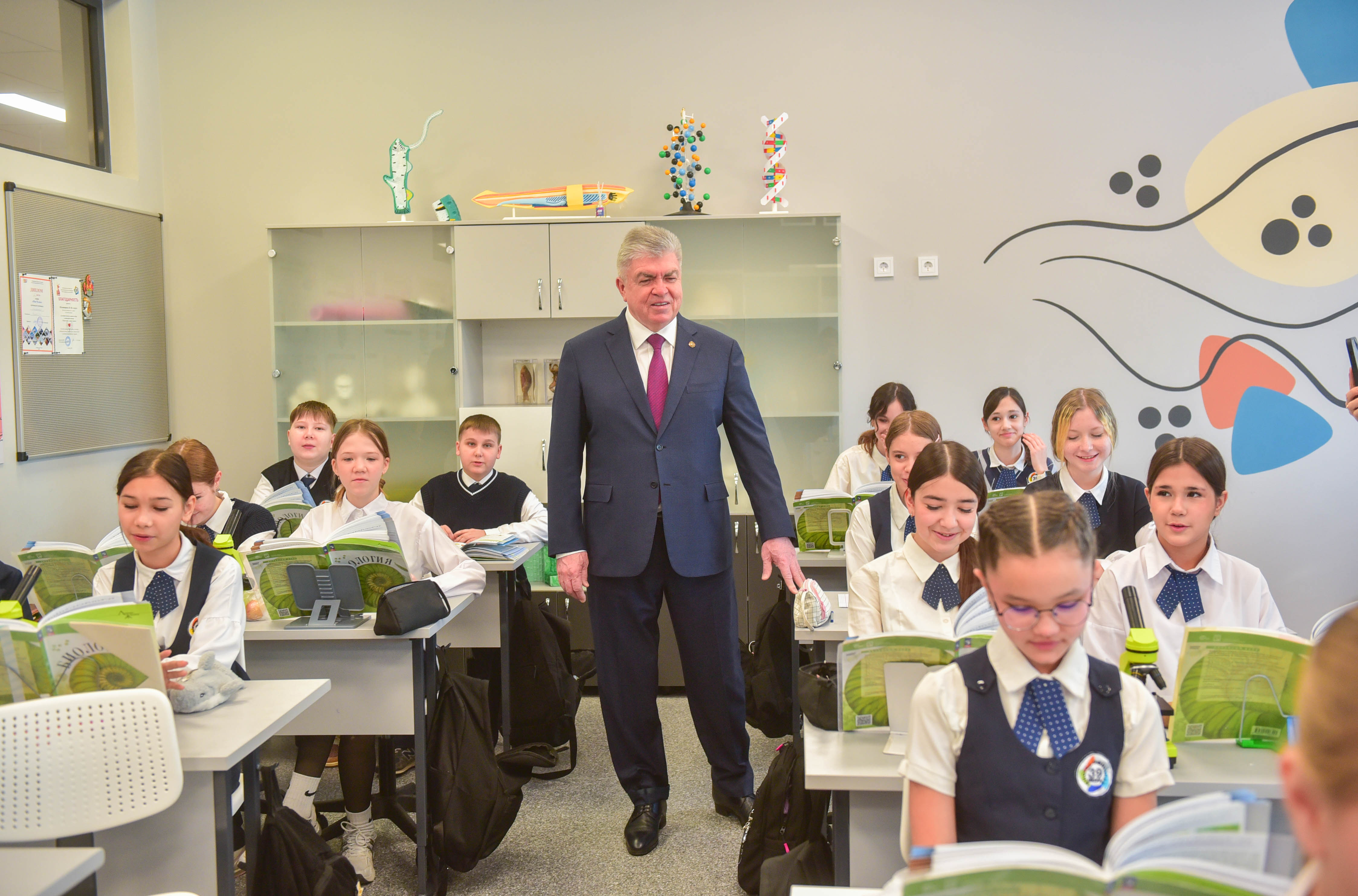 В кабинете биологии Наиля Магдеева поприветствовали шестиклассники. Директор школы Наталья Тутова пояснила, что что перед уроками все ученики сдают сотовые телефоны – забирают их только после звонка на перемену.