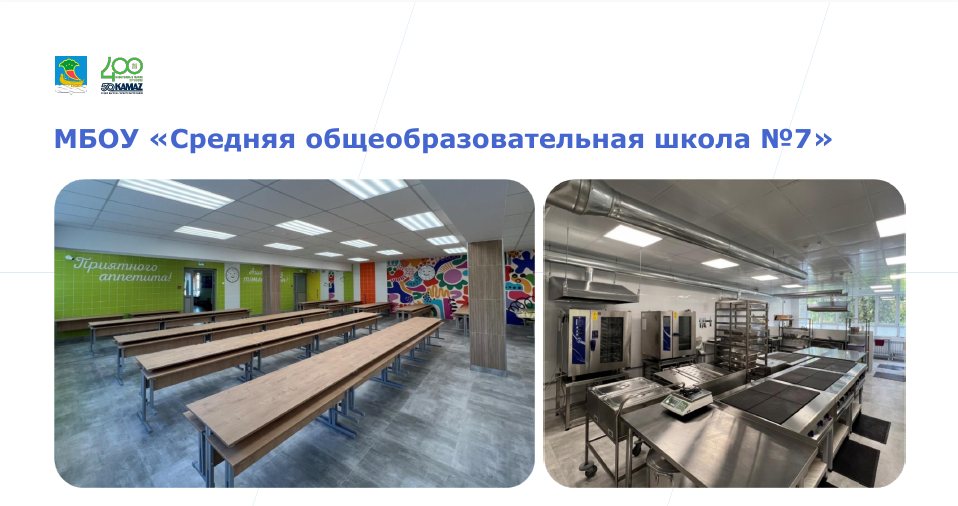 В рамках республиканской программы «Капитальный ремонт пищеблоков общеобразовательных организаций Республики Татарстан с приобретением оборудования» в семи средних школах: №№ 7, 8, 19, 25, 27, 34 и 60 выполнен ремонт пищеблоков.