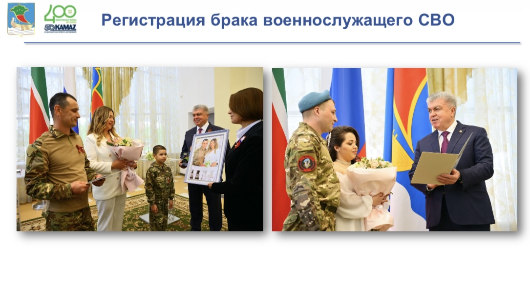 Начальник Управления ЗАГС Равиля Зарипова доложила об итогах работы за 2025 год, объявленный Президентом Российской Федерации Владимиром Путиным Годом защитника Отечества. Работа ведомства была направлена на всестороннюю поддержку семей, особенно семей защитников Родины. Так, управлением ЗАГС проводилась работа по оказанию содействия гражданам, участвующим в специальной военной операции: консультирование по соответствующим жизненным ситуациям, оперативная выдача повторных документов, регистрации актов гражданского состояния.