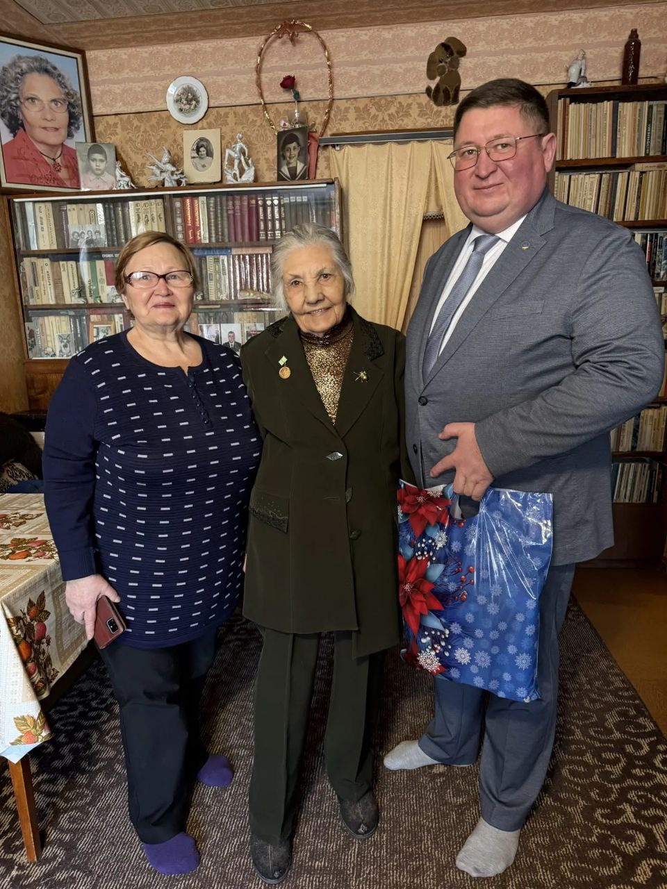 Глава района вместе с депутатами Городского Совета, председателями территориального общественного самоуправления пообщался с ветеранами, выслушал их воспоминания, поблагодарил за их вклад в Великую Победу и вручил праздничные продуктовые наборы.