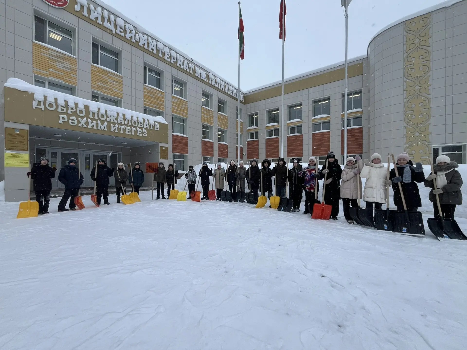 Ученики лицея-интерната №84 им. Г. Акыша убрали от снега территорию своего учреждения и прилегающую к ней территорию.