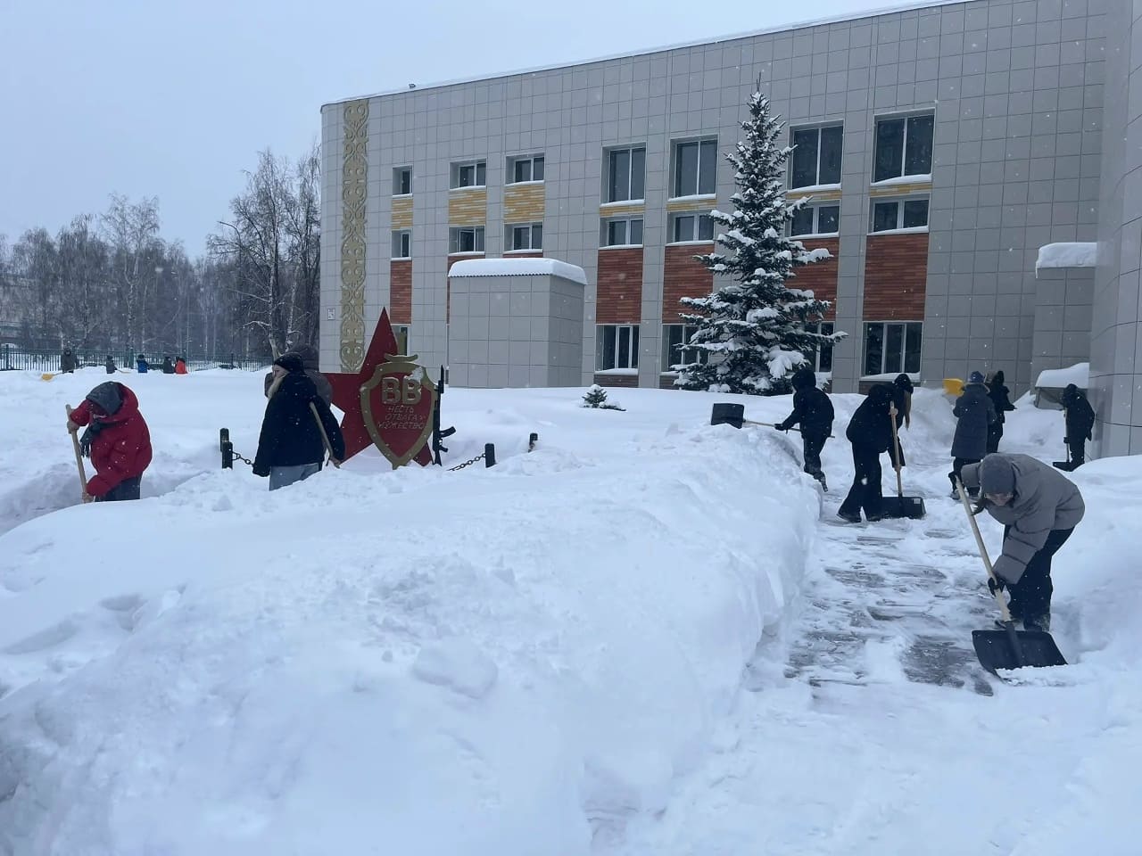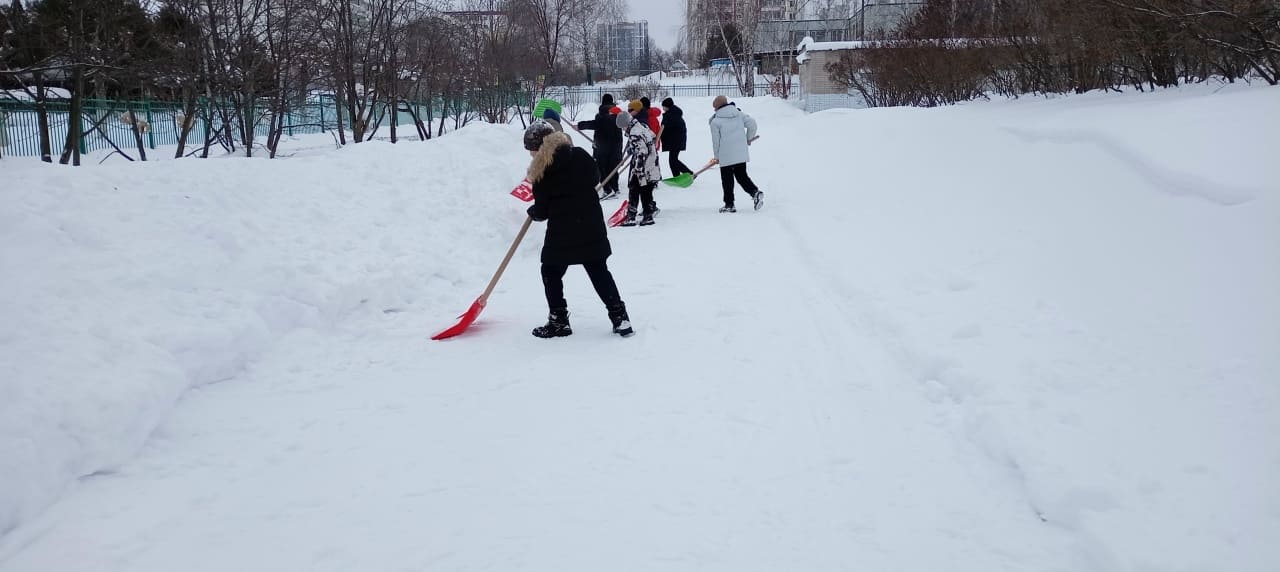 Учащиеся школ №№35, 38, 45, 46, 76 и 84 очистили от снежных масс подходы и площадки перед своими учебными заведениями.