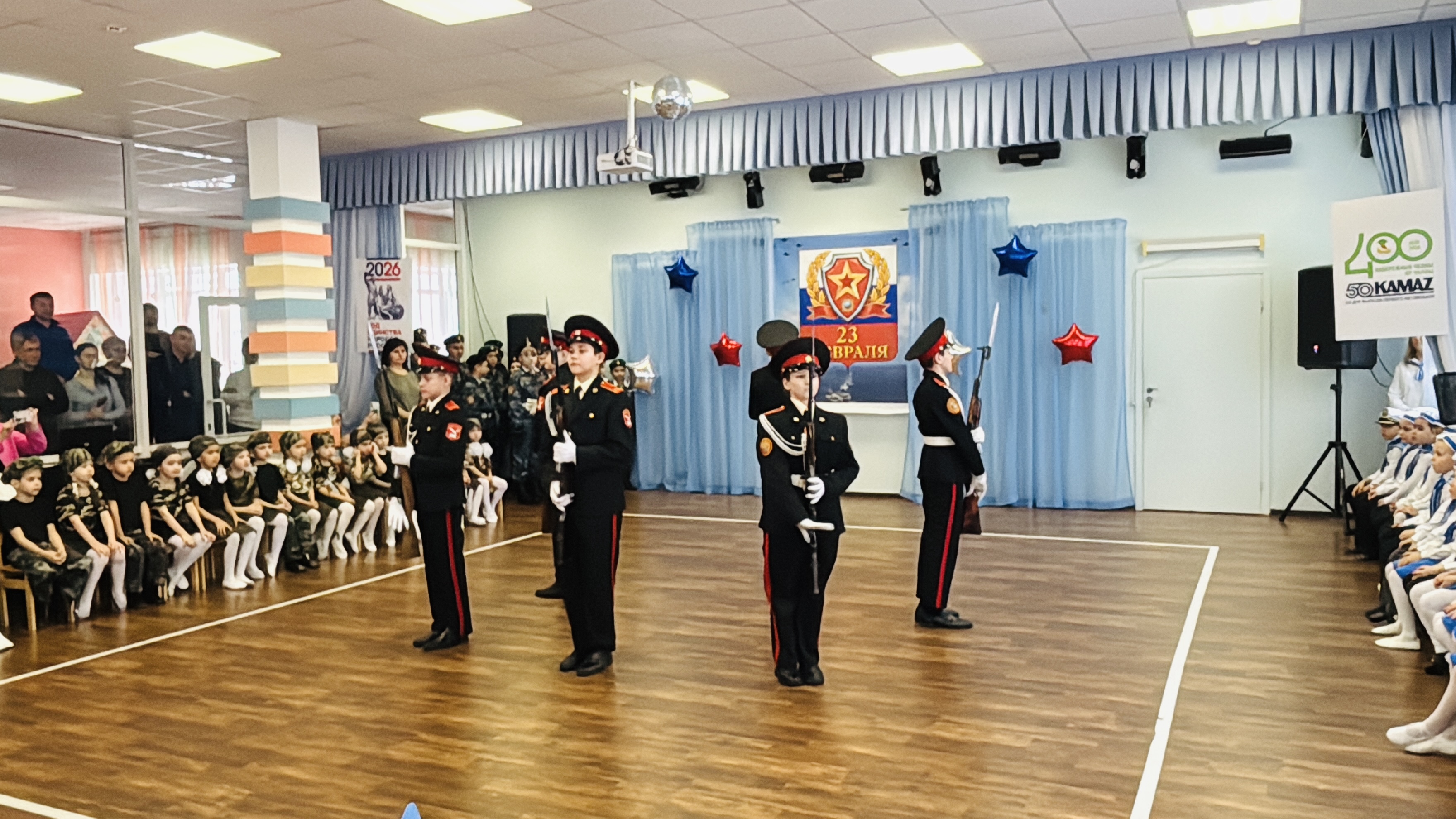 Особое восхищение у наших ребят вызвало выступление учеников кадетской школы №82 им. И. Маннанова «Парадный строевой расчет группы карабинеров» и «Спецназ».
