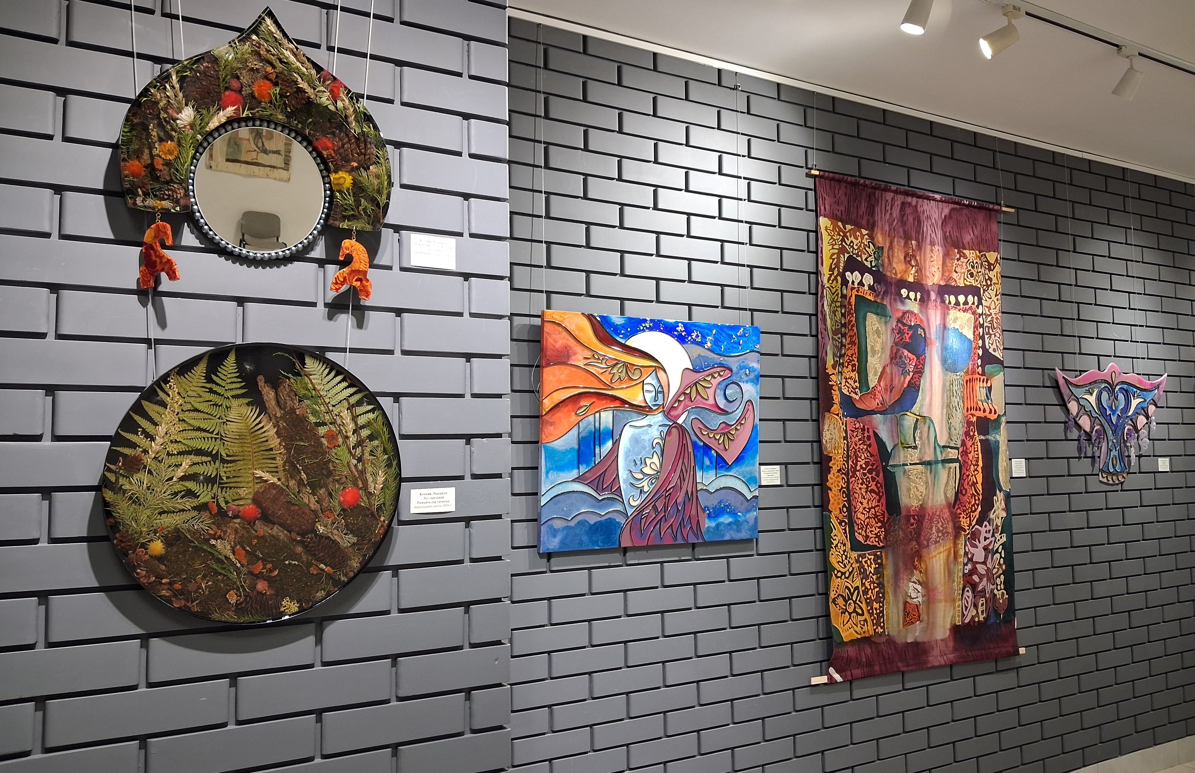 Экспозиция объединила произведения, выполненные в разных техниках графики и декоративно‑прикладного искусства. В пространстве выставки оживают гобелены с видами первозданной природы, графические работы с изысканными растительными узорами, загадочные образы из древних славянских сказаний, воплощённые с помощью эпоксидной смолы и пластика. Каждая работа словно приглашает зрителя отправиться в путешествие по волшебному миру природы, где традиции переплетаются с современными художественными решениями.