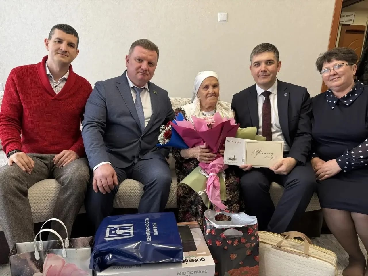 Поздравить долгожительницу и выразить ей глубокую признательность за многолетний труд приехали официальные лица города. В торжественном визите приняли участие глава Центрального района Фидарис Хабибуллин, депутат Городского Совета Андрей Елантьев, помощник депутата Государственного Совета Олега Николаева, а также председатель ТОС «39 комплекс» Мадина Мухаметзянова.