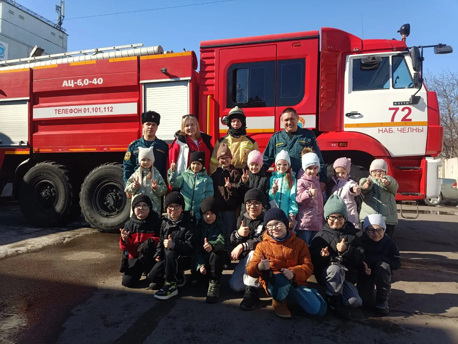 Экскурсоводом выступил помощник начальника караула, старший прапорщик Камиль Ганиев. Он показал ребятам, как устроена пожарная машина изнутри, разрешил посидеть в кабине и примерить боевую одежду пожарного.