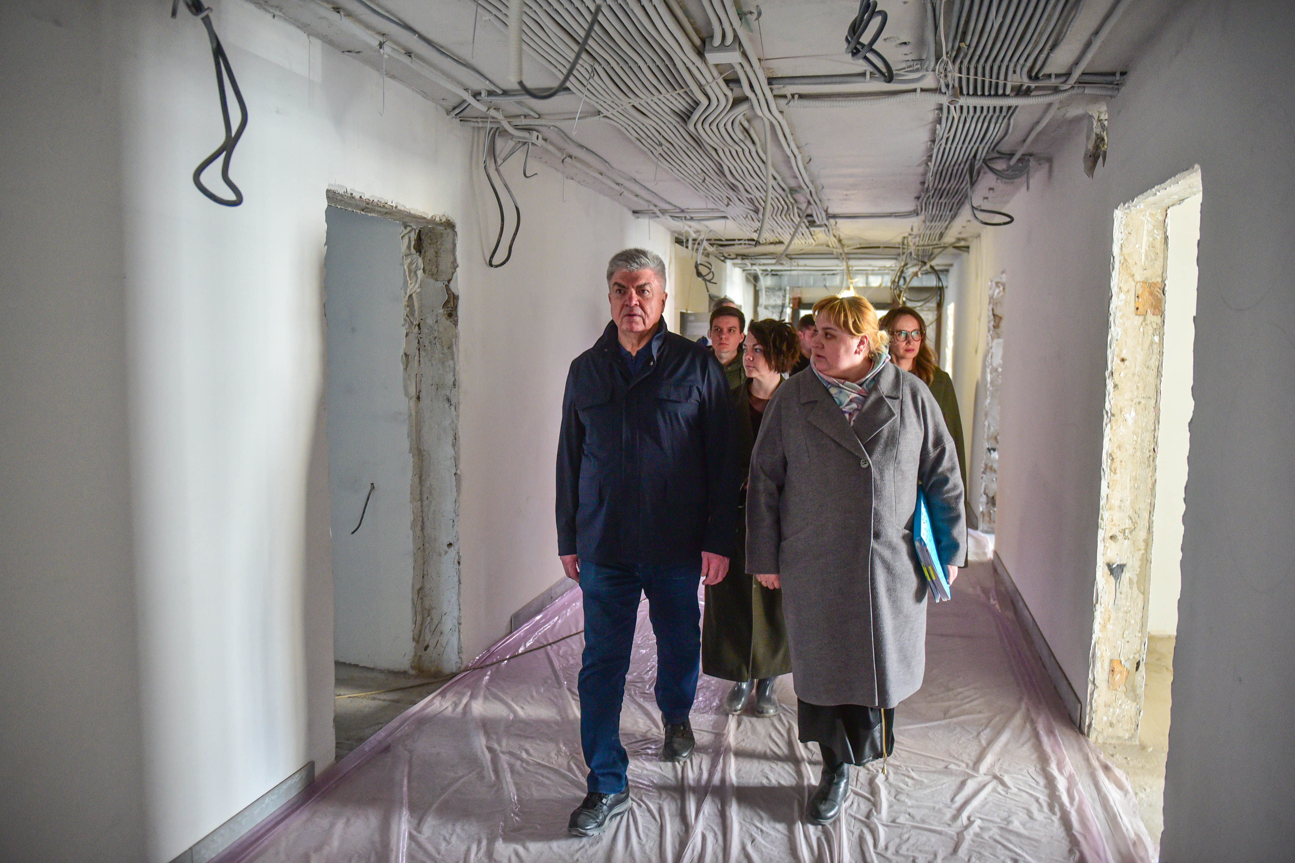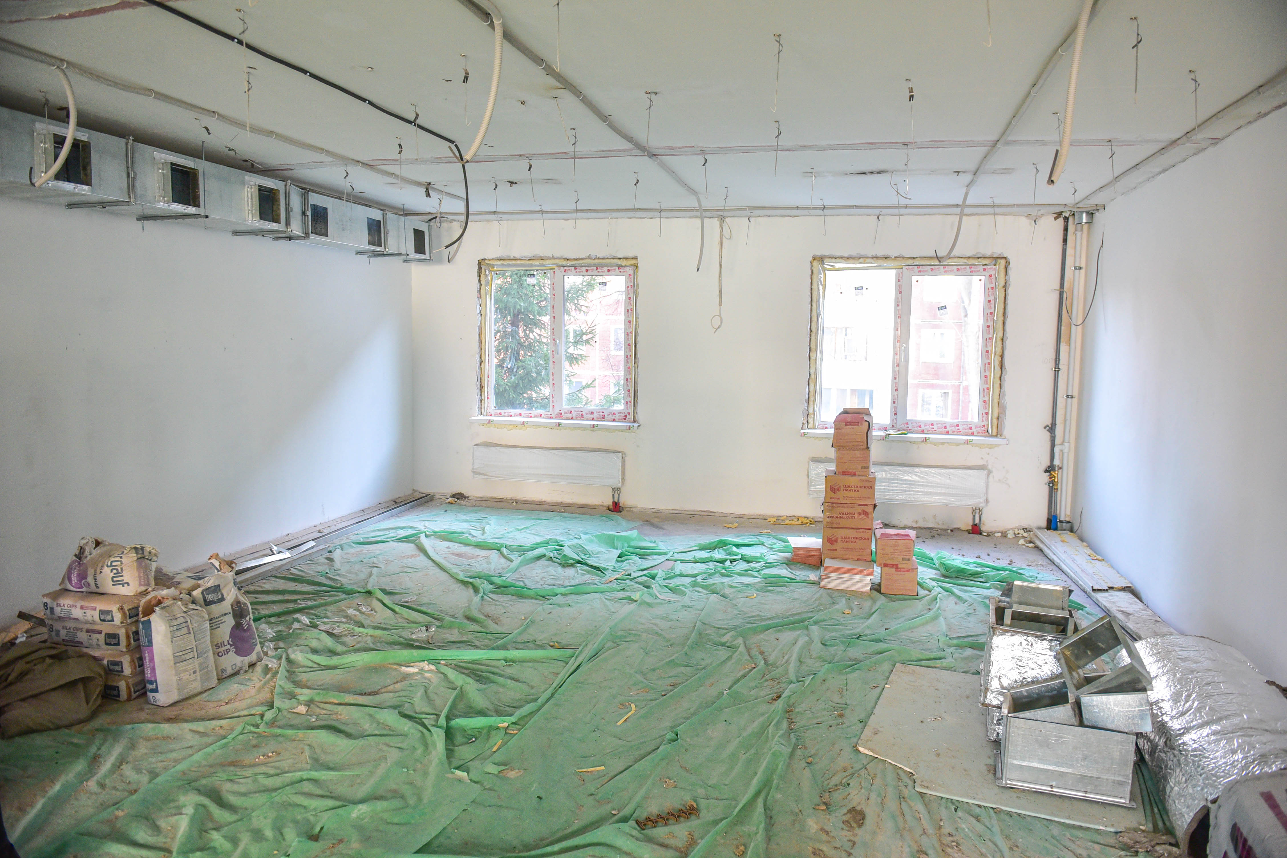 На объекте выполняются отделочные работы стен, полов и потолков, меняют окна и обновляют инженерные сети – водоснабжения, водоотведения, теплоснабжения, электроснабжения, вентиляции и слаботочные системы.