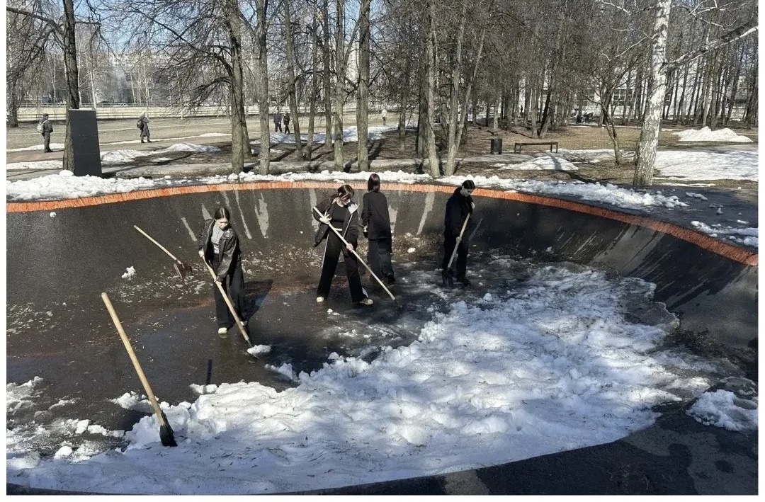Аналогичные мероприятия прошли на территории парка «Гренада». К работам присоединились студенты Набережночелнинского педагогического колледжа. Их участие позволило снизить нагрузку на коммунальные службы и оперативно подготовить парковую инфраструктуру к весеннему сезону, обеспечив безопасность передвижения граждан.