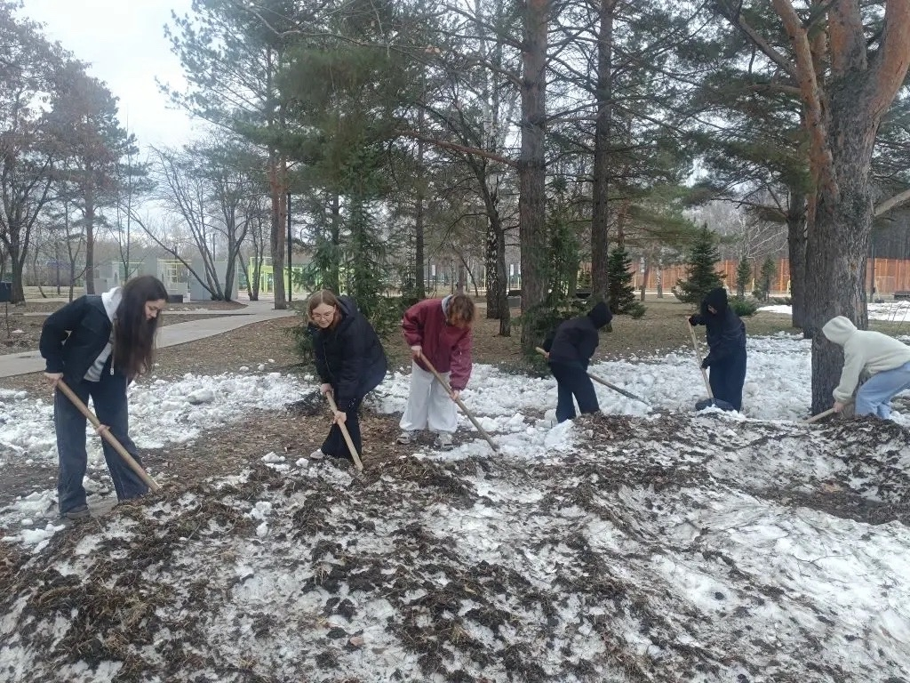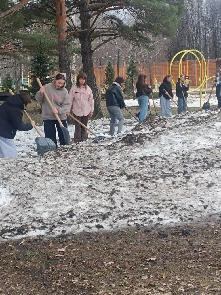 Студенты Набережночелнинского педагогического колледжа вышли на территорию парка Гренада, где помогли коммунальным службам в рыхлении снега и сборе мусора. Ученики школы №38 тем временем привели в порядок территорию своего учебного заведения.