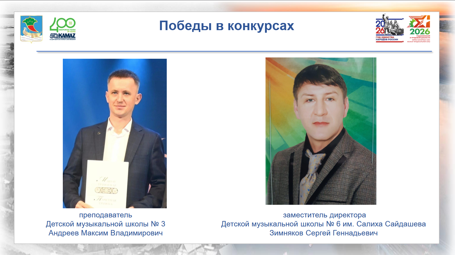 Заместитель директора Детской музыкальной школы № 6 имени Салиха Сайдашева Сергей Зимняков одержал победу в престижной Всероссийской премии «Человек с большим сердцем» в номинации «От всего сердца», что стало ярким признанием его вклада в воспитание подрастающего поколения.
