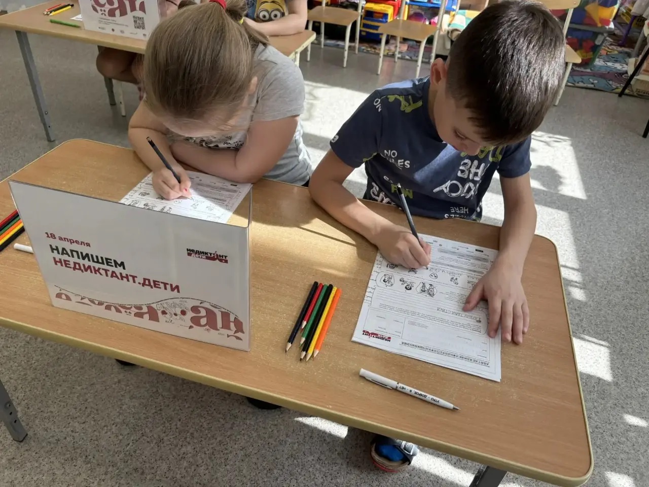 Для дошкольников в этом году впервые был организован специальный формат — «Недиктант.Дети». Воспитанники подготовительных к школе групп не писали текст под диктовку, а выполняли увлекательные творческие задания, разработанные специально для их возраста.