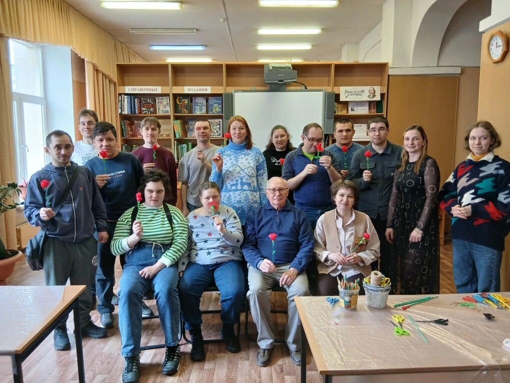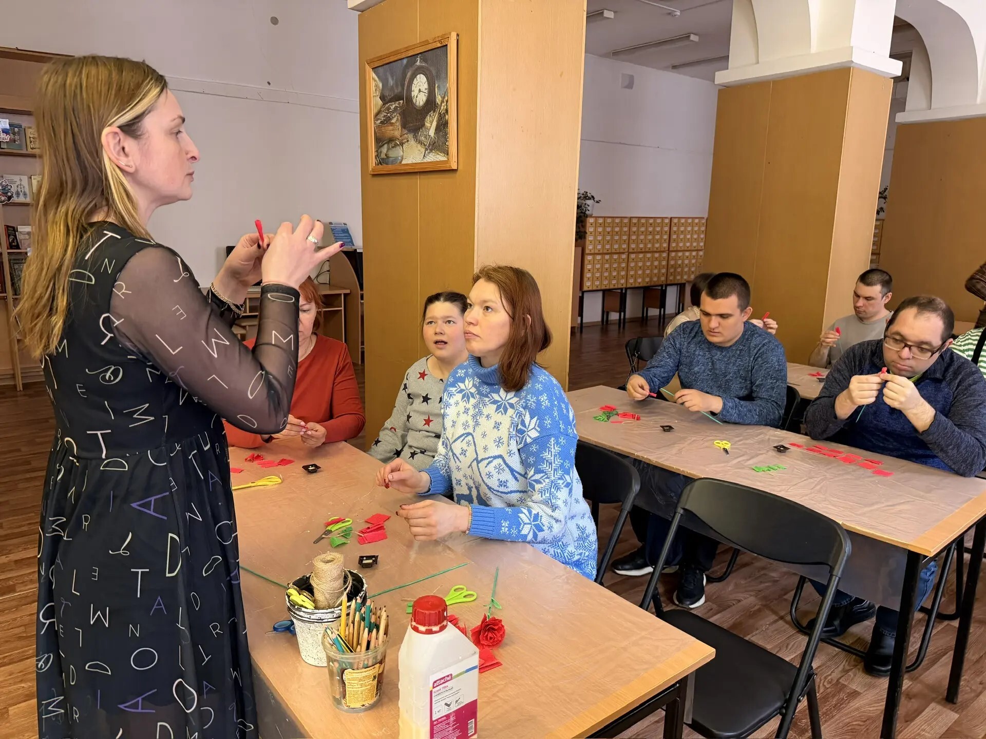 После того, как получатели социальных услуг вдоволь насладились выставкой, их ждал еще один приятный сюрприз – мастер-класс под названием "Гвоздика". Получатели социальных услуг с увлечением взялись за работу. Под чутким руководством опытных наставников они своими руками изготовили цветок гвоздики — символ свободы, труда и весны. В процессе создания цветка молодые люди закрепили технику работы с гофрированной бумагой: научились правильно формировать лепестки, придавать объём бутону и собирать детали в единую композицию.
