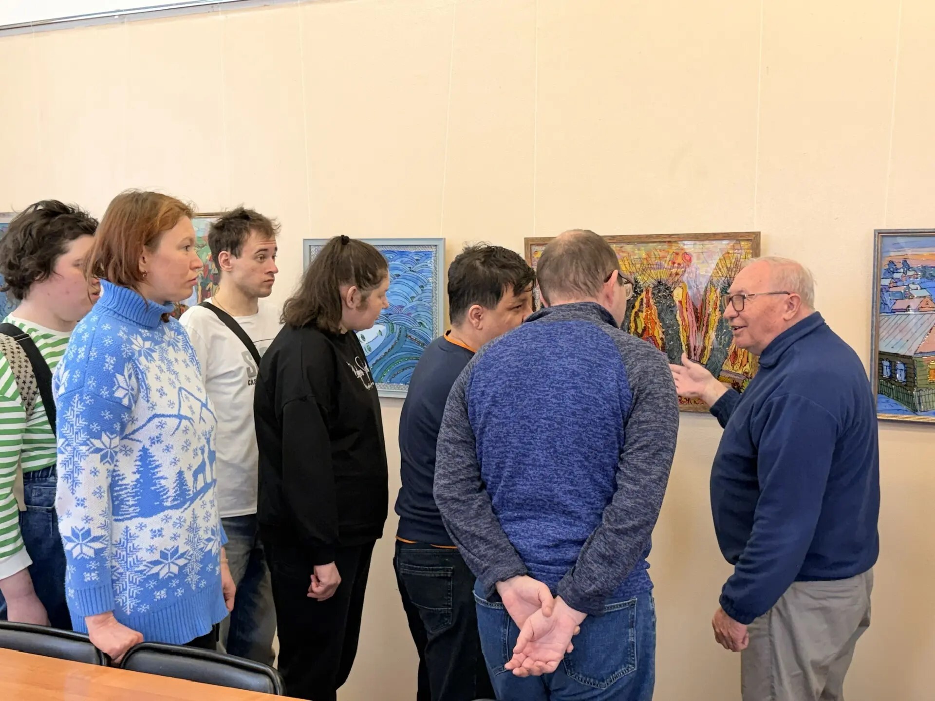 Главным героем этого дня стал народный художник Республики Татарстан, лауреат престижной премии имени Баки Урманче – Мадияр Хазиев. Мастер не только познакомил гостей с персональной выставкой «Песня Родине», но и поделился секретами своего ремесла. Подопечные отделения с интересом рассматривали полотна, на которых были запечатлены живописные пейзажи родного края, сцены из жизни людей и яркие национальные мотивы.