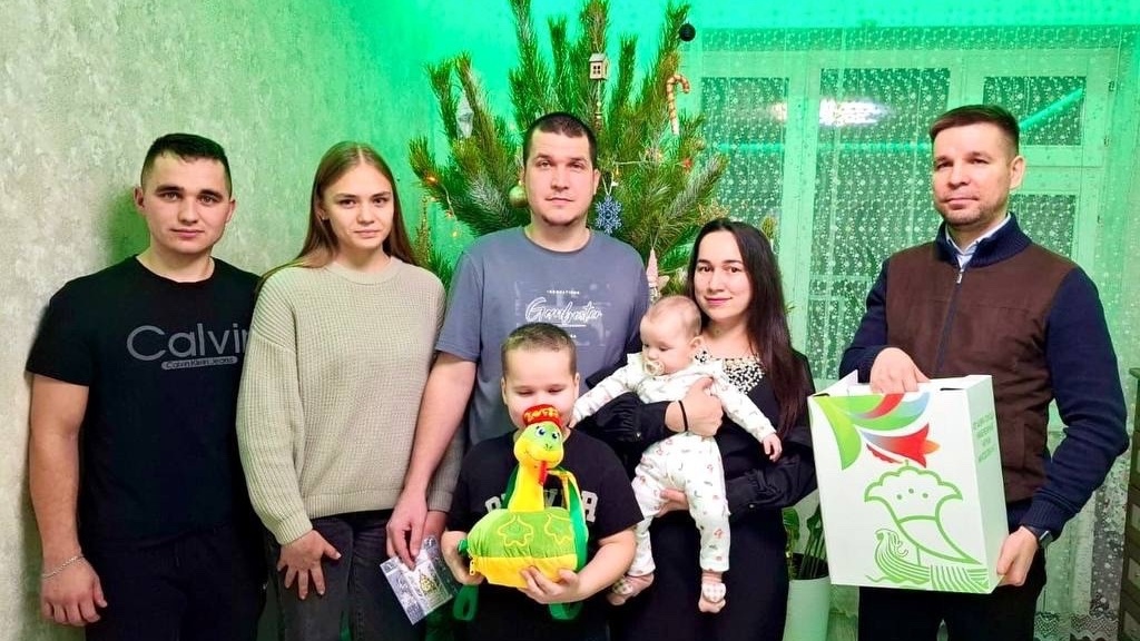 Комсомол районы хакимияте башлыгы Ленар Әхмәтҗанов Павел һәм Надежда Зверевлар гаиләсенә килде һәм бүләк бирде.