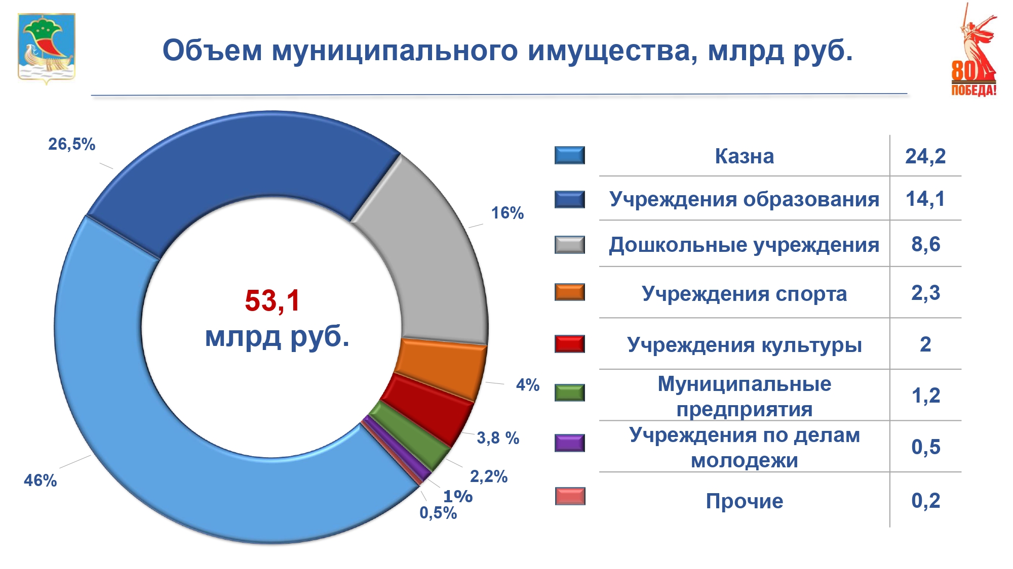 Башкарма комитетның җир һәм мөлкәти мөнәсәбәтләр идарәсе башлыгы Ленар Гыйззәтуллин әйтүенчә, 2025 елның 1 гыйнварына муниципаль милек реестрында 279 муниципаль учреждение исәпләнә.