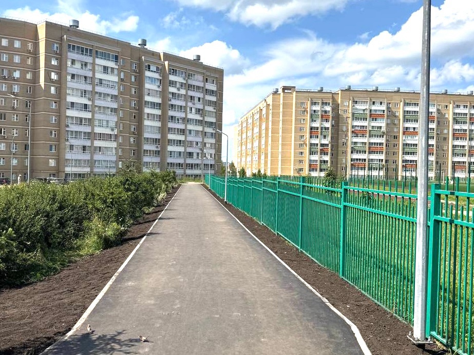 Проект кысаларында уку йортының коймасы буйлап яңа уңайлы тротуар ясалды, җәяүлеләр һәм машина йөртүчеләрнең өстәмә иминлеген тәэмин итә торган кирәкле юл билгеләре һәм махсус билгеләр куелды.